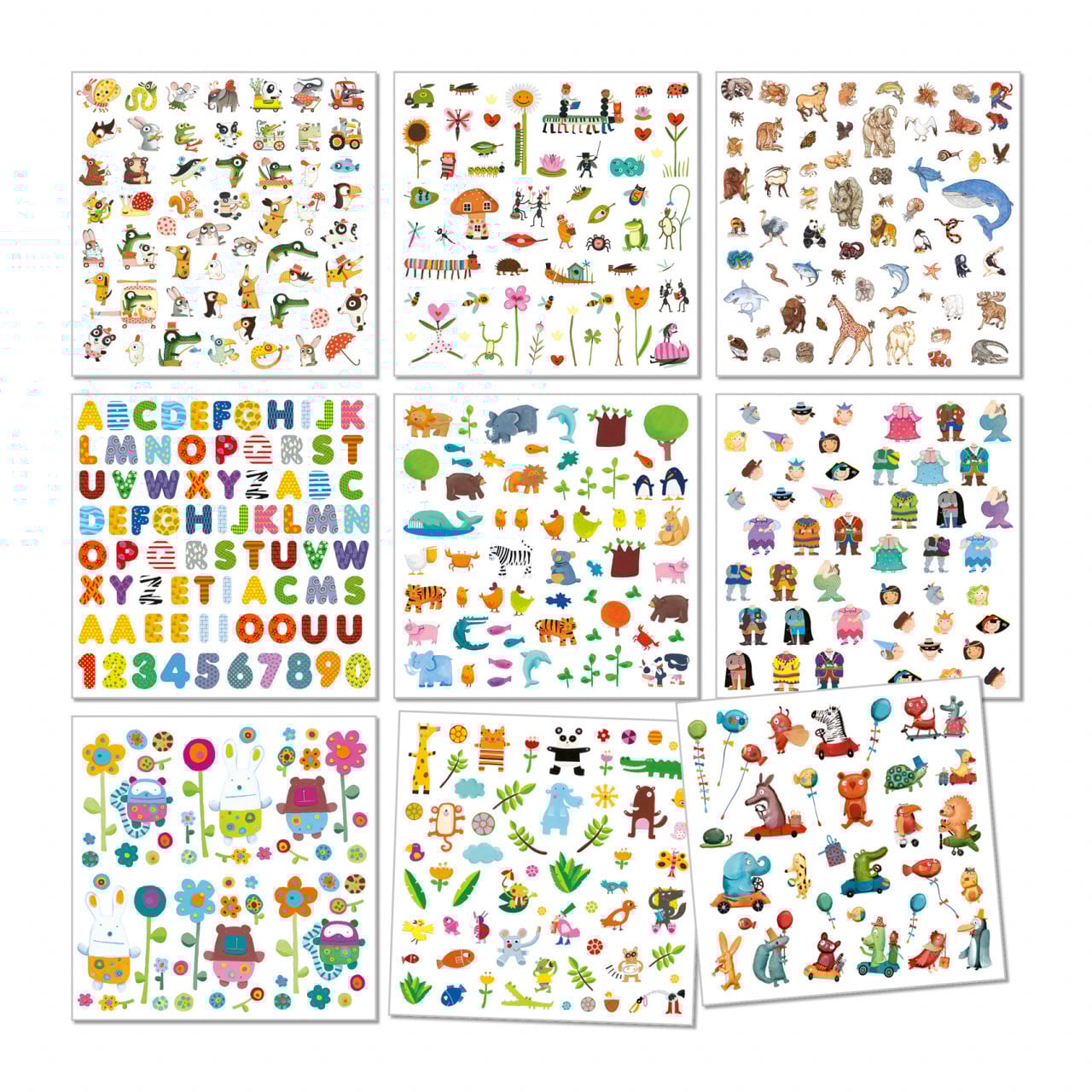 Varsta recomandata: 3 - 6 ani. 1000 de abtibilduri individuale, organizate intr-o mapa decorativa, cartonata. Abtibildurile reprezinta diferite animale, personaje, litere si multe altele, potrivite pentru copii intre 3-6 ani. Confectionate din  materiale non-toxice, cu vopsele non-toxice, conform reglementarilor EN71&ASTM.  AVERTISMENT: Contraindicat copiilor sub 3 ani, contine piese mici, pericol de sufocare. A se utiliza sub directa supraveghere a unui adult. Producator: Djeco, Franta.