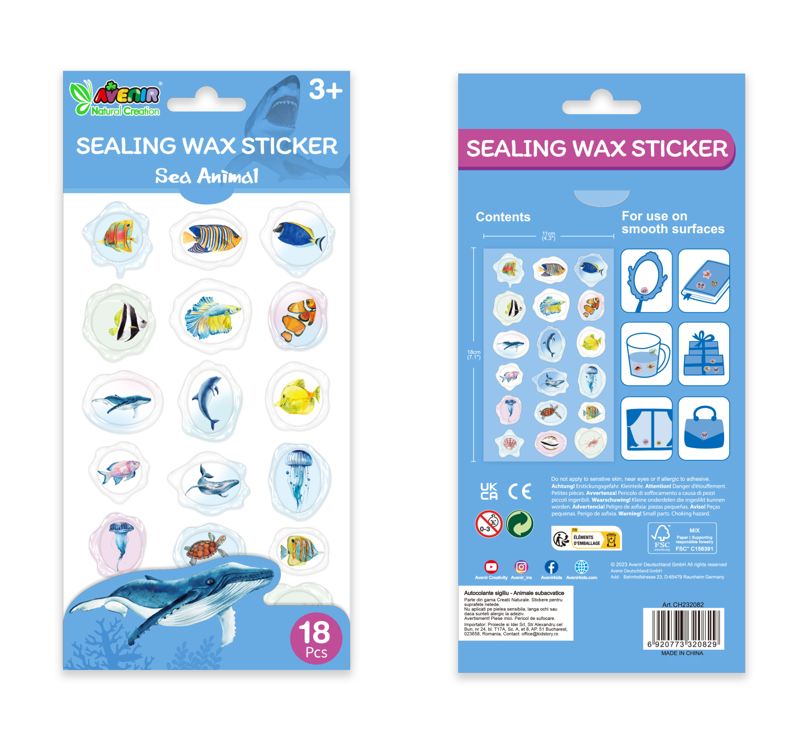 Număr de Abțibilduri: 18 abțibilduri cu animale subacvatice.