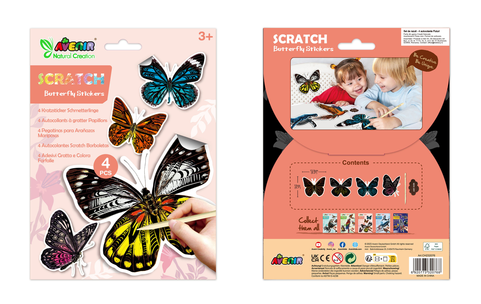 Cadou Perfect: Cu designul său atrăgător și efectul captivant de răzuire, setul de abțibilduri razuibile - Fluturi este cadoul ideal pentru copiii pasionați de natură și de artă creativă.
