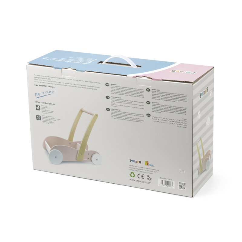 Copiii vor adora sa sa faca primii pasi impreuna cu acest antemergator.  Cu un un design atractiv, in culori scandinave, jucaria multifunctionala va fi nu doar un ajutor de nadejde pentru primii pasi ai copilului, dar si un prieten cu chef de joaca. Designul robust ofera suport si stabilitate in timp ce micutii tai fac primii pasi, ajutand la dezvoltarea abilitatilor de mers si echilibru.  Include un cufar mare pentru ca cei mici sa isi puna jucariile preferate si sa le impinga cu antemergatorul oriunde doresc.  Inelul de cauciuc antiderapant de pe roata creste frecarea si asigura siguranta copiilor atunci cand se joaca. Jucarie educativa din lemn, Montessori, in culori pale, scandinave. Material: lemn Dimensiuni: 43,5 * 49 * 30 cm Varsta recomandata: 18 luni+ *AVERTISMENT! Contraindicata copiilor mai mici de 12 luni. Jucaria/produsul poate contine piese mici care se pot inghiti sau inhala existand pericolul de sufocare sau nu este potrivita copiilor mai mici de luni. Toate jucariile marca VIGA sunt fabricate din lemn de calitate cu vopsele si cerneluri non-toxice, supuse testelor de siguranta respectand standardele pentru jucarii ale Uniunii Europene EN71 si ASTM. Nu lasati ambalajul produsului la indemana copiilor. Indepartati orice ambalaj al produsului inainte de a da jucaria copilului. Va recomandam sa supravegheati copilul in timp ce se foloseste produsul. Pastrati instructiunile si etichetele pentru referinte viitoare. Feriti produsul de foc, temperaturi ridicate si umiditate.