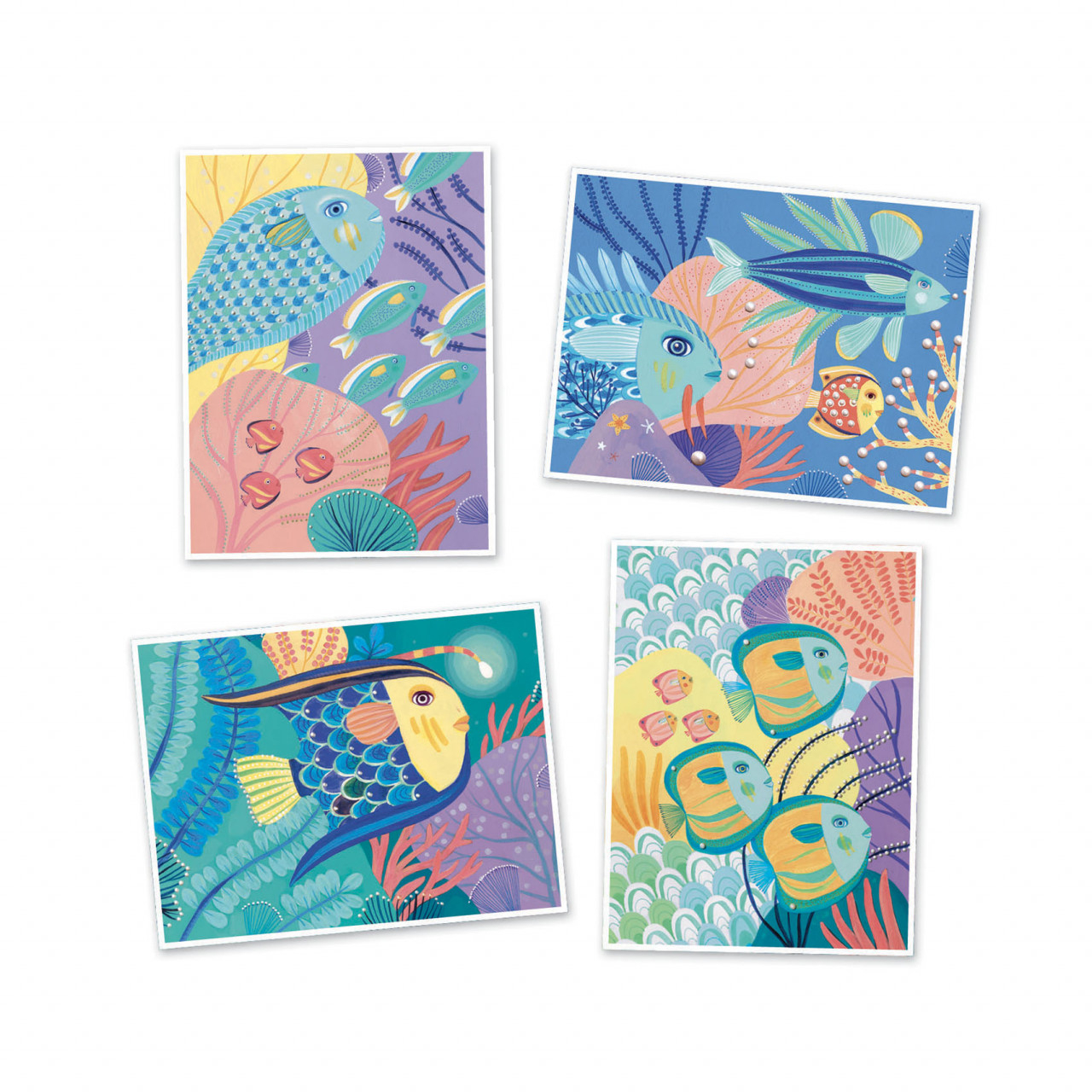 Varsta recomandata: 7 - 13 ani. Set creativ cu planse pentru desen. Contine 4 planse preilustrate|5 carioci pensula cu doua capete|unul tip pensula si celalalt subtire|1 sticla cu vopsea perlata pentru decorul final|manual de instructiuni. Confectionat din materiale non-toxice|cu culori non-toxice. AVERTISMENT! Contraindicat copiilor sub 3 ani. A se utiliza sub directa supraveghere a unei persoane adulte. Producator: Djeco|Franta.