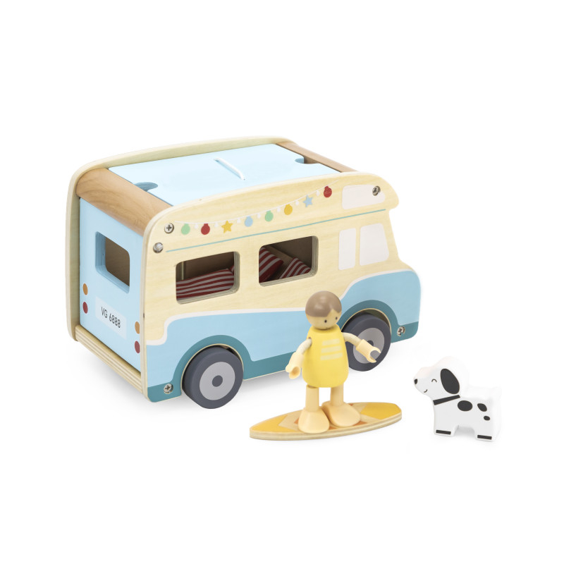 Invitam toti aventurierii - mari si mici!  Hai sa ne plimbam cu stil!Pregatiti-va pentru distractie pe plaja cu rulota noastra grozava! Echipata cu tot ce aveti nevoie pentru o vacanta de neuitat, acest set va impresiona atat copiii, cat si parintii.Ce gasiti inauntru: 2 papusi cool: gata sa prinda valuri si sa se bronzeze la soare! Accesorii de plaja: 2 scaune de plaja confortabile cu perne si pernute, o masa laterala pentru gustari, un gratar pentru delicatese pe plaja, o umbrela de plaja, o placa de surf pentru ride-uri epice, o toaleta pentru opriri urgente si un catelus jucaus! Caracteristici uimitoare: usa culisanta, acoperisul ridicabil pentru o vedere la plaja, suportul de pe acoperis pentru placa de surf si portbagajul usor accesibil pentru toate echipamentele. E ca un mic resort pe roti!De ce o sa va placa: Posibilitati nelimitate de joaca: incurajeaza aventuri imaginare pe plaja si jocuri de rol creative. Detalii realiste: de la usa culisanta la suportul de pe acoperis, toate sunt gandite pentru o experienta autentica. Timp de calitate impreuna: perfect pentru a petrece timpul impreuna in vacante simulate si pentru a crea amintiri de neuitat.Parinti, pregatiti-va sa va alaturati distractiei! Sigur si durabil: conceput pentru numeroase escapade pe plaja cu materiale robuste. Joc educativ: promoveaza abilitatile sociale, creativitatea si capacitatea de povestire. Zambete garantate: pentru ca momentele cand vedeti fetele micutilor luminate de bucurie? Nepretuite. Jucarie educativa din lemn, Montessori. Material: lemn  Dimensiuni: 19 x 11,8 x 12,5 cm; Varsta recomandata: 3 ani+  Ambalare: 1 colet, 0.5 kg AVERTISMENT! Contraindicat copiilor mai mici de 3 ani. Jucaria/produsul poate contine piese mici care se pot inghiti sau inhala existand pericolul de sufocare sau nu este potrivita copiilor mai mici de luni. Toate jucariile marca VIGA sunt fabricate din lemn de calitate cu vopsele si cerneluri non-toxice, supuse testelor de siguranta respectand standardele pentru jucarii ale Uniunii Europene EN71 si ASTM. Nu lasati ambalajul produsului la indemana copiilor. Indepartati orice ambalaj al produsului inainte de a da jucaria copilului. Va recomandam sa supravegheati copilul in timp ce se foloseste produsul. Pastrati instructiunile si etichetele pentru referinte viitoare. Feriti produsul de foc, temperaturi ridicate si umiditate.