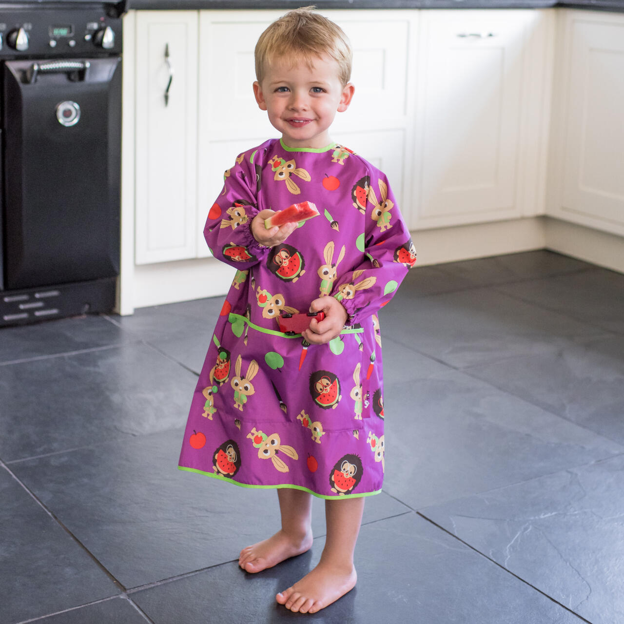 Cand nu mai aveti nevoie de protectia completa oferita de kit-ul de hranire Tidy Tot, noua baveta lunga va deveni aliatul perfect. Special conceputa pentru bebelusi si copii mici pana la 3 ani, aceasta baveta asigura o acoperire optima in timpul meselor si sesiunilor de joaca, fiind una dintre cele mai lungi bavete disponibile pe piata.