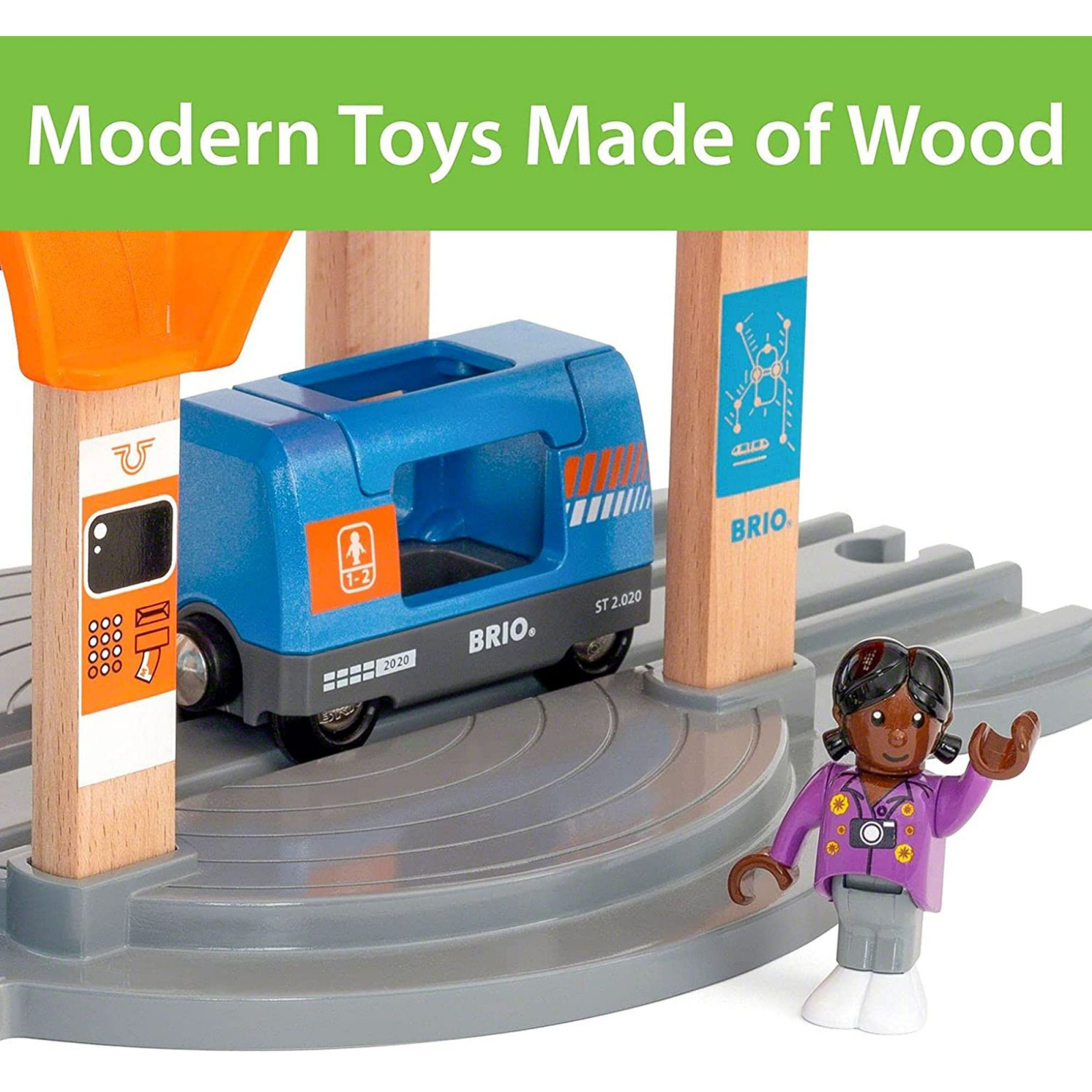 „Cu totii la bord!” Trenurile sunt gata sa plece din statie. Instruieste trenul sa incetineasca pana la o oprire completa, sa aprinda luminile pentru a semnala ca a sosit si sa redea un sunet al statiei pentru a crea o ambianta jucausa. Utilizati aplicatia Smart Tech Sound pentru a schimba sunetul postului in statiile recunoscute din intreaga lume, cum ar fi Berlin, Londra sau Paris. Acum trenul s-a oprit, ajutati pasagerul de la bordul vagonului de calatorie si incepeti calatoria prin BRIO World. Setul include: o gara un tunel o figurina un tren BRIO le ofera copiilor diferite experiente de joc prin care acestia pot explora cu bucurie si in siguranta elemente din viata reala, pot descoperi lucruri noi si creste in timp ce se joaca. SMART TECH SOUND Copilul isi poate crea acum un mediu de joc interactiv, plin de optiuni de experimentare si personalizare Tehnologia integrata Smart Tech Sound creste functionalitatea si valoarea jocului prin jocul cauza - efect Motorul de inregistrare si redare a sunetului Smart Tech este esential jocului, activand sunetul, luminile si actiunile atunci cand este utilizat cu alte produse Smart Tech BRIO te indeamna sa explorezi lumea! Copiii sunt extrem de curiosi despre ei insisi, despre prietenii si familiile lor, despre lumea in care traiesc. Brio creaza jucarii care nu numai ca sunt distractive, ci le ofera celor mici ore intregi de joaca, incuranjand dezvoltarea lor. Povestea BRIO a inceput intr-o mica familie din orasul suedez Osby in 1884 Mai mult de un secol de joc inovator Produse de calitate ce s-au transformat de-a lungul timpului intr-o mostenire indelungata a maiestriei, calitatii si jocului Combinata cu curiozitatea si simtul insaciabil pentru inovatie, BRIO ofera unele dintre cele mai iubite si atemporale jucarii De-a lungul anilor, indrumati de motto-ul „Nu te mai opri din joc”, BRIO a castigat o multime de premii, fiind mosteniri pretuite de care se bucura atat copiii cat si parintii.