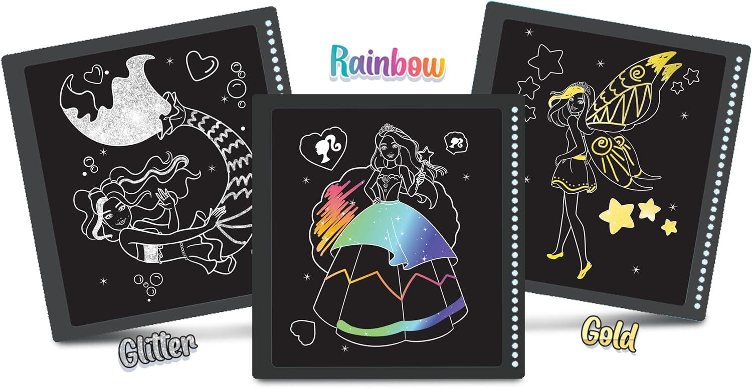 Bine ati venit in lumea magica a caietului de razuit "Barbie Mer-Maizing" pentru fetite! Acest caiet ofera o experienta captivanta si creativa, invitand copiii sa descopere culorile stralucitoare ale curcubeului cu nuante fantastice.