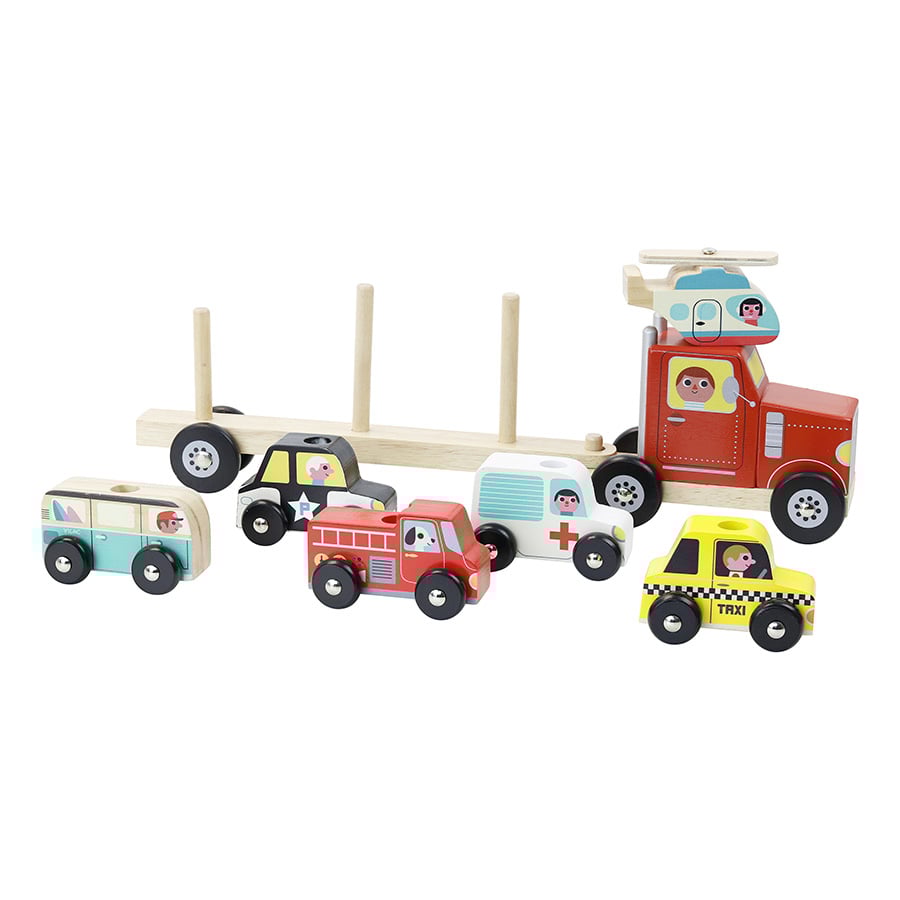 Camion cu vehicule de transport - Jucarie de stivuire din lemn - Vilac
