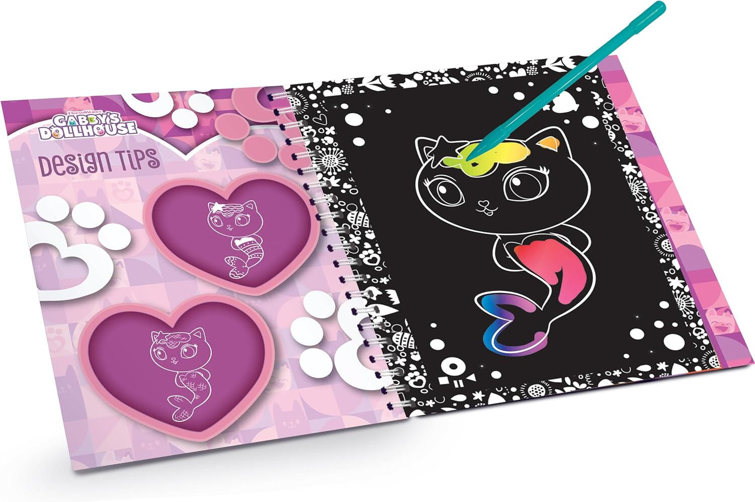 Exploreaza magia culorilor cu aceasta carticica de razuit Gabby's Dollhouse si pisicute. Copiii tai vor putea razui suprafata neagra pentru a dezvalui imagini stralucitoare, transformand fiecare pagina intr-o opera de arta fascinanta.