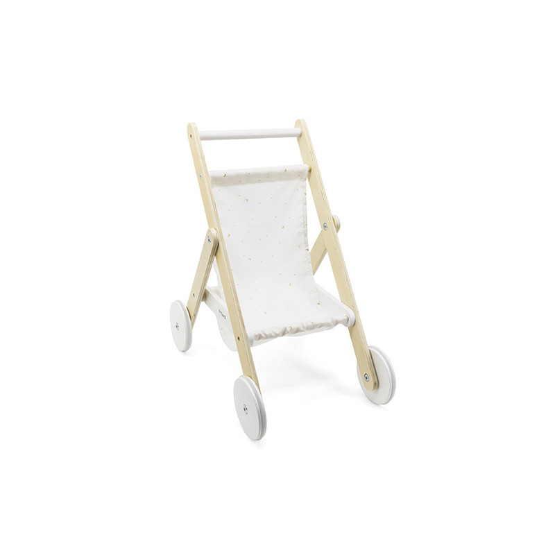 Carucior pentru papusi, PolarB Viga Cu o rama solida din lemn si un cos practic sub carucior pentru a depozita accesorii, acest carucior pentru papusi este decorat cu un imprimeu fermecator cu stele si luna, fiind potrivit pentru orice tip de papusa, de pana la 38 cm. Rotile sunt echipate cu cauciuc pentru protectie suplimentara si reducerea zgomotului, asigurand o plimbare lina si linistita pentru micutii dvs., indiferent de suprafata pe care merg. Aceasta contribuie la o experienta de plimbare placuta si increzatoare pentru fiecare aventura cu papusa preferata! Realizat din materiale sigure si durabile, cu ilustratii viu colorate si un design prietenos, acest carucior pentru papusi este ideal pentru sesiuni de joaca educativa si momente pline de distractie in familie. Jucarie educativa din lemn, Montessori. Material: lemn  Dimensiuni: 37,2 x 24,7 x 40,6 cm; Varsta recomandata: 3 ani +  Ambalare: 1 colet, 1,2 kg AVERTISMENT! Contraindicat copiilor mai mici de 18 luni. Jucaria/produsul poate contine piese mici care se pot inghiti sau inhala existand pericolul de sufocare sau nu este potrivita copiilor mai mici de luni. Toate jucariile marca VIGA sunt fabricate din lemn de calitate cu vopsele si cerneluri non-toxice, supuse testelor de siguranta respectand standardele pentru jucarii ale Uniunii Europene EN71 si ASTM. Nu lasati ambalajul produsului la indemana copiilor. Indepartati orice ambalaj al produsului inainte de a da jucaria copilului. Va recomandam sa supravegheati copilul in timp ce se foloseste produsul. Pastrati instructiunile si etichetele pentru referinte viitoare. Feriti produsul de foc, temperaturi ridicate si umiditate.