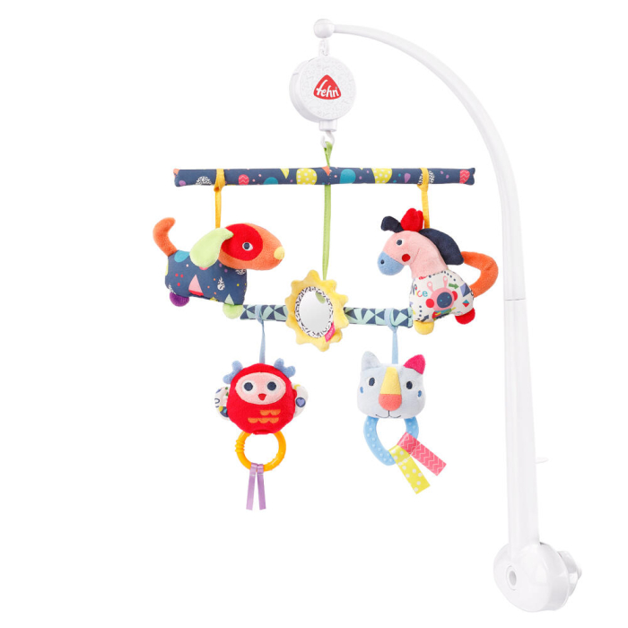 Un carusel muzical cu o multime de elemente viu colorate care vor starni curiozitatea copilasului tau!