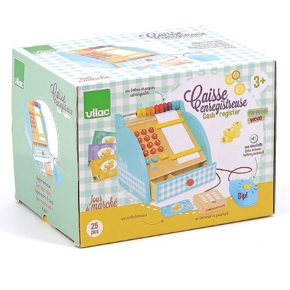Transformă-ți copilul într-un mic comerciant cu această adorabilă casă de marcat din lemn! Cu un design fermecător, acest set complet include un sertar pentru bani, monede, bancnote și un card bancar de jucărie. De asemenea, dispune de un aparat de scanat sonor pentru a adăuga mai multă distracție jocului. Ideală pentru copiii cu vârsta peste 3 ani, această jucărie nu doar că stimulează imaginația și creativitatea, dar ajută și la dezvoltarea abilităților motorii fine și a coordonării mână-ochi. În plus, copiii pot învăța prin joc despre tranzacții comerciale și gestionarea banilor. Fie că se joacă singuri sau cu prietenii, această casă de marcat va oferi ore întregi de distracție și învățături valoroase! Puncte forte: Material de calitate: Fabricat din lemn durabil, acest joc este sigur și rezistent. Accesorii complete: Include un sertar pentru bani, scanner sonor, monede, bancnote și un card bancar. Încurajează jocul de rol: Ideal pentru dezvoltarea imaginației și creativității copiilor. Dezvoltă abilități motorii: Ajută la îmbunătățirea coordonării mână-ochi și a dexterității. Stimularea abilităților sociale: Împreună cu prietenii sau familia, copiii pot învăța despre interacțiuni comerciale. Jucărie educativă: Încurajează învățarea despre tranzacții și gestionarea banilor. Siguranță garantată: Testat conform standardelor de siguranță europene pentru copiii cu vârsta peste 3 ani. Conține: 10 monede din lemn 10 bancnote din hartie 1 POS pentru plata cu cardul bancar 1 scaner cu Bip (baterii incluse) 1 rolă de hârtie 1 card bancar din lemn Vârsta recomandată: 3 ani + Dimensiuni: 17 x 16 x 20 cm Material: lemn, hârtie Brand: VILAC Avertisment: Jucărie testată în laborator, conformă cu directiva 2009/48/CE, destinată copiilor cu vârsta de peste 3 ani. ATENȚIE! Nu este potrivită pentru copiii mai mici de 3 ani. Conține piese mici. Pericol de sufocare.