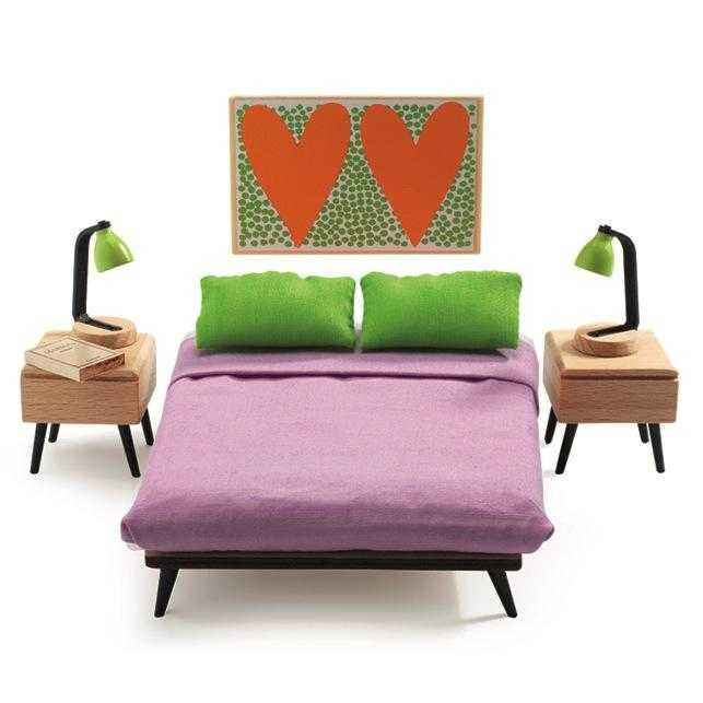 Mobila dormitor Djeco pentru papusi Un dormitor ideal pentru cei mai intelegatori parinti! Cei cu care ne jucam la casuta papusii si nu ne cearta niciodata. Varsta recomandata: +4 ani. Confectionat din lemn si textil, cu materiale si vopsele non toxice conform reglementarilor EN71;ASTM. AVERTISMENT! Contraindicat copiilor sub 3 ani. A se folosi sub directa supraveghere a unei persoane adulte. Producator: D jeco, Franta
