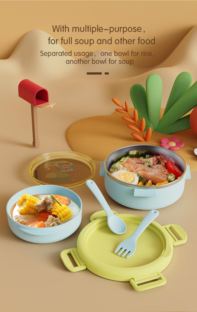 Caserola termica cu lingurita si furculita, blue, U-Grow