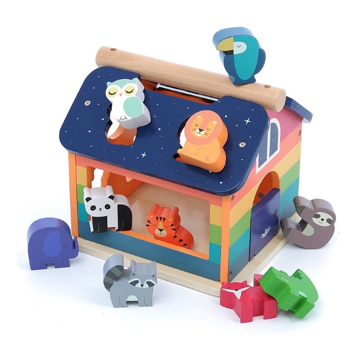 Casuta curcubeu din lemn - 10 forme cu animale - Vilac