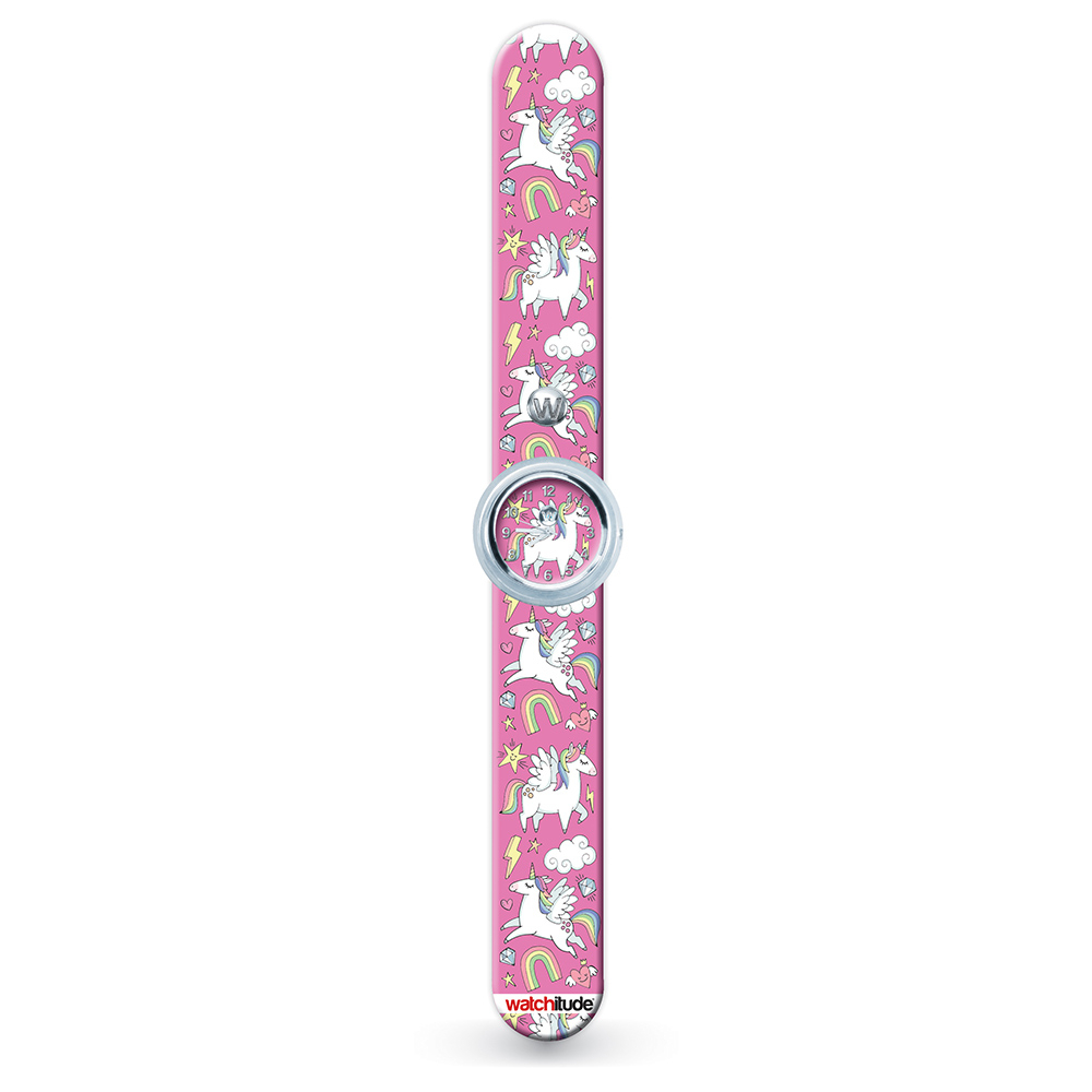 Ceas analog pentru copii cu bratara din silicon slap-on, Lumea unicornilor