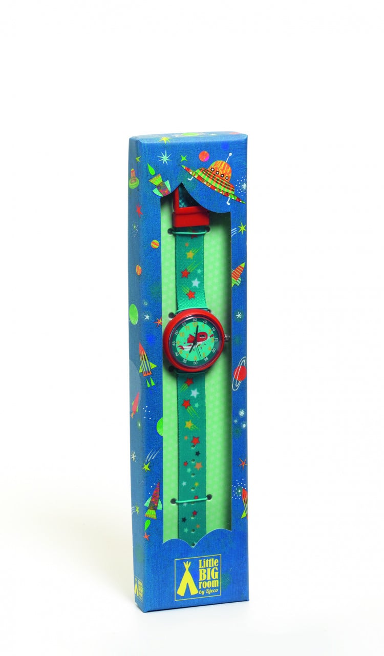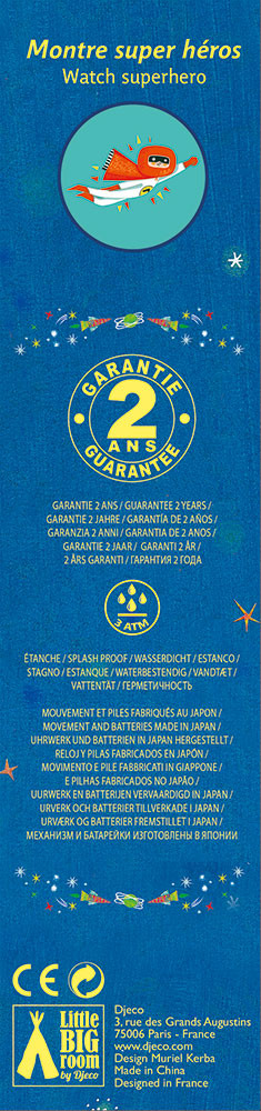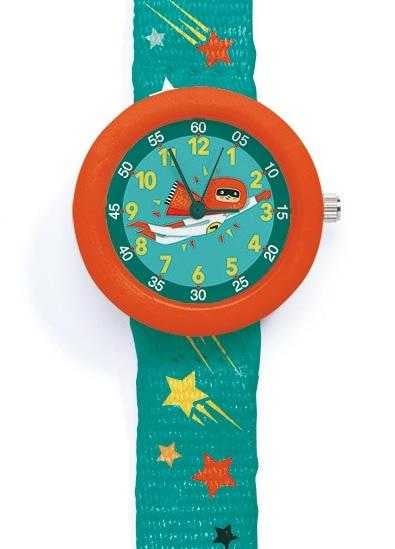 Ziua in care copilul primeste primul ceas este una memorabila! Este implinirea dorintei lui de a "fi mare". Fara ecran cu led sau altimetru, pentru a fi sigur pentru cei mici, acest ceas are bratara reglabila, este colorat, fiabil si cu mecanism silentios. Ecranul are un design care ajuta la invatarea citirii orei exacte. Rezistent la apa pana la 3 ATM. Mecanism si baterie fabricate in Japonia. 2 ani garantie. Ceasul vine ambalat intr-o cutie decorativa. Functioneaza cu baterie, care este inclusa in set. Varsta recomandata: + 3 ani. AVERTISMENT: Contraindicat copiilor sub 3 ani. Contine piese ce pot fi inghitite. A se utiliza sub directa supraveghere a unei persoane adulte. Producator: Djeco, Franta.