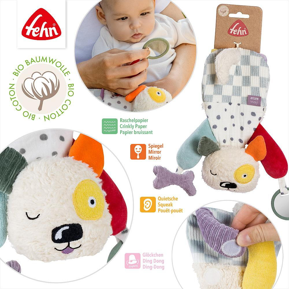 Un companion vesel si educativ pentru micutul tau, perfect atat pentru acasa, cat si pentru plimbari! Jucaria face parte din colectia FehnNATUR® Dog Dotty Collection.