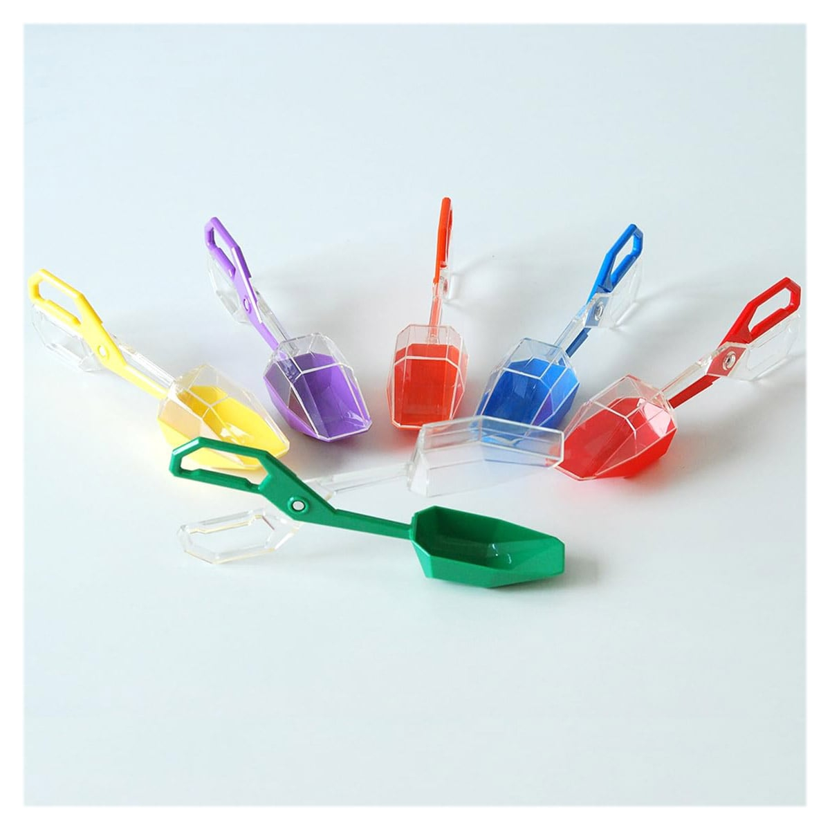 • Clestii de plastic au un brat colorat si un brat transparent, ceea ce le permite copiilor sa observe lingurile si sa examineze continutul acestora.
