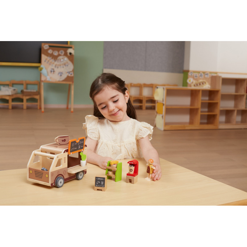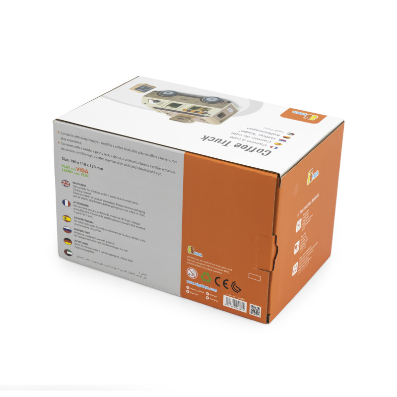 E Timpul pentru o pauza de cafea!Pregateste-te sa te rasfeti cu o ceasca delicioasa de cafea si prajituri cu setul nostru uimitor de cafenea! Perfect pentru micii barista si pasionatii de prajituri, acest set promite sa aduca multa bucurie si distractie.Ce aducem la masa: Propriul tau barista: cunoaste-ti micul maestru al cafelei, gata sa pregateasca cea mai buna cafea. Prajituri delicioase: un suport cu prajituri plin cu un gogoasa, un croissant si o paine - hmm! Febra de cafea: completati cu o ceasca de cafea, o masina de cafea cu masa si un semn frumos de cafea. Decor chic: o planta pentru o atingere extra de ambianta de cafenea si un semn pe tabla pentru specialitatile zilei.De ce o sa-ti placa: Joc educativ: incurajeaza creativitatea, abilitatile sociale si capacitatea de povestire Caracteristici interactive: acoperisul care se ridica, fereastra de servire pentru comenzi si un portbagaj care se deschide usor pentru a stoca toate bunatatile.Parinti, nu ratati aceasta oportunitate delicioasa! Achizitionati setul nostru de cafenea astazi si lasati distractia sa prinda viata!  Jucarie educativa din lemn, Montessori. Material: lemn  Dimensiuni: 19 x 11,8 x 15 cm; Varsta recomandata: 3 ani+  Ambalare: 1 colet, 0.5 kg AVERTISMENT! Contraindicat copiilor mai mici de 3 ani. Jucaria/produsul poate contine piese mici care se pot inghiti sau inhala existand pericolul de sufocare sau nu este potrivita copiilor mai mici de luni. Toate jucariile marca VIGA sunt fabricate din lemn de calitate cu vopsele si cerneluri non-toxice, supuse testelor de siguranta respectand standardele pentru jucarii ale Uniunii Europene EN71 si ASTM. Nu lasati ambalajul produsului la indemana copiilor. Indepartati orice ambalaj al produsului inainte de a da jucaria copilului. Va recomandam sa supravegheati copilul in timp ce se foloseste produsul. Pastrati instructiunile si etichetele pentru referinte viitoare. Feriti produsul de foc, temperaturi ridicate si umiditate.