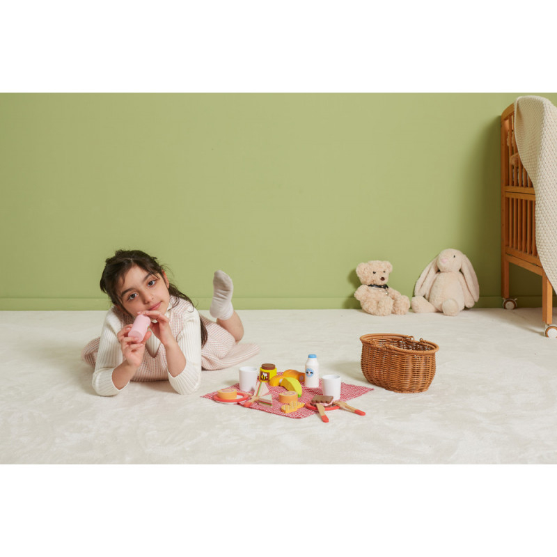 Acest set cu 30 de piese include tot ce ai nevoie pentru a-ti duce prietenii la un picnic!  Setul include un cos de ratan, o fata de masa rosie, 2 cani, 2 farfurii, 2 seturi de cutite si furculite si feluri de mancare frumos pregatite (2 sandvisuri, 2 rulouri elvetiene, 2 vafe, un biscuit sandwich, o sticla de lapte, o bucata de paine, un pepene verde, un borcan cu dulceata de capsuni, o cutie de miere si o banana).Felurile de mancare sunt tinute impreuna cu Velcro si pot fi taiate cu un cutit de lemn inclus in set.Stimuleaza dezvoltarea abilitatilor motorii fine si a abilitatilor sociale. Jucarie din educativa din lemn, Montessori.   Material: lemn Dimensiuni: 25 x 23,5 x 14,5 cm Varsta recomandata: 18 luni+ *AVERTISMENT! Contraindicat copiilor mai mici de 18 luni. Jucaria/produsul poate contine piese mici care se pot inghiti sau inhala existand pericolul de sufocare sau nu este potrivita copiilor mai mici de luni. Toate jucariile marca VIGA sunt fabricate din lemn de calitate cu vopsele si cerneluri non-toxice, supuse testelor de siguranta respectand standardele pentru jucarii ale Uniunii Europene EN71 si ASTM. Nu lasati ambalajul produsului la indemana copiilor. Indepartati orice ambalaj al produsului inainte de a da jucaria copilului. Va recomandam sa supravegheati copilul in timp ce se foloseste produsul. Pastrati instructiunile si etichetele pentru referinte viitoare. Feriti produsul de foc, temperaturi ridicate si umiditate.