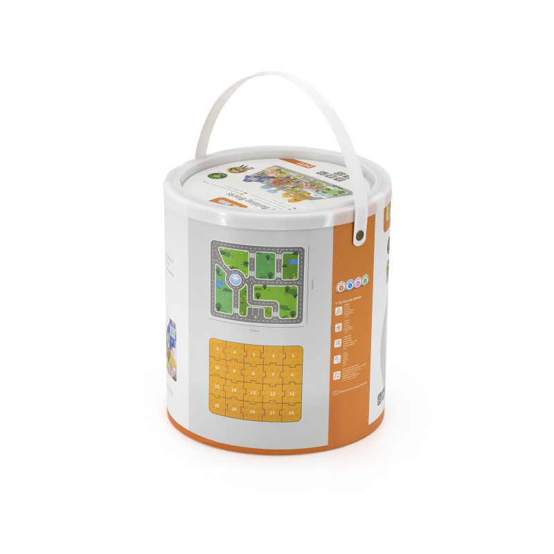 Acest set de blocuri din lemn ii va tine ocupati pe cei mici ore intregi construindu-si propriul oras!Convenabil impachetat intr-o galeata pentru depozitare usoara si cu un puzzle de podea de 20 de piese pentru a crea un fundal de oras, setul include 80 de blocuri in culori vibrante si diverse forme, oferind posibilitati nelimitate pentru distractia construirii!Stimuleaza imaginatia, creativitatea si abilitatile de a suprapune, construi si echilibra. Jucarie educativa din lemn, Montessori. Material: lemn  Dimensiuni: saculet: 22 x 22 x 2,5 cm; Varsta recomandata: 24 luni+  Ambalare: 1 colet, 1,5 kg AVERTISMENT! Contraindicat copiilor mai mici de 24 luni. Jucaria/produsul poate contine piese mici care se pot inghiti sau inhala existand pericolul de sufocare sau nu este potrivita copiilor mai mici de luni. Toate jucariile marca VIGA sunt fabricate din lemn de calitate cu vopsele si cerneluri non-toxice, supuse testelor de siguranta respectand standardele pentru jucarii ale Uniunii Europene EN71 si ASTM. Nu lasati ambalajul produsului la indemana copiilor. Indepartati orice ambalaj al produsului inainte de a da jucaria copilului. Va recomandam sa supravegheati copilul in timp ce se foloseste produsul. Pastrati instructiunile si etichetele pentru referinte viitoare. Feriti produsul de foc, temperaturi ridicate si umiditate.
