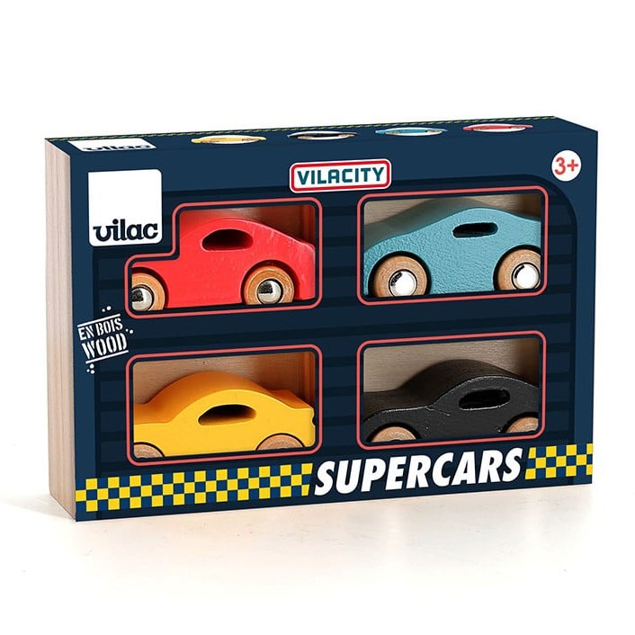 Cutie cu 4 masinute de cursa din lemn - Vilac