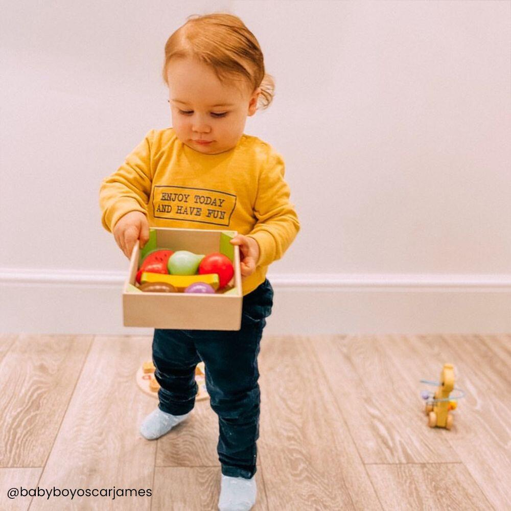 Setul de fructe feliate din lemn este un joc educativ perfect pentru cei mici, care ii va invata sa utilizeze un cutit in conditii de maxima siguranta