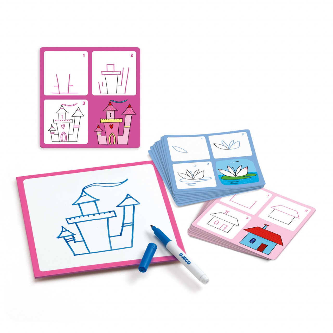 Varsta recomandata: 4-7 ani. 2 cercuri|cateva linii bine trasate|si gata trasura! Mai avem nevoie doar de printesa|pe care o desenam usor: facem intai capul|apoi corpul si rochia. Invatam sa desenam pas cu pas cu atelierul creativ Djeco. Jocul contine: plansa pentru desenat|o carioca - marker|burete|24 cartonase care arata etapele obtinerii unui desen. Confectionate din materiale non toxice conform EN71 ; ASTM. AVERTISMENT: Contraindicat copiilor mai mici de 3 ani|contine piese mici. A se folosi sub stricta supraveghere a unei persoane adulte. Producator: Djeco|F ranta