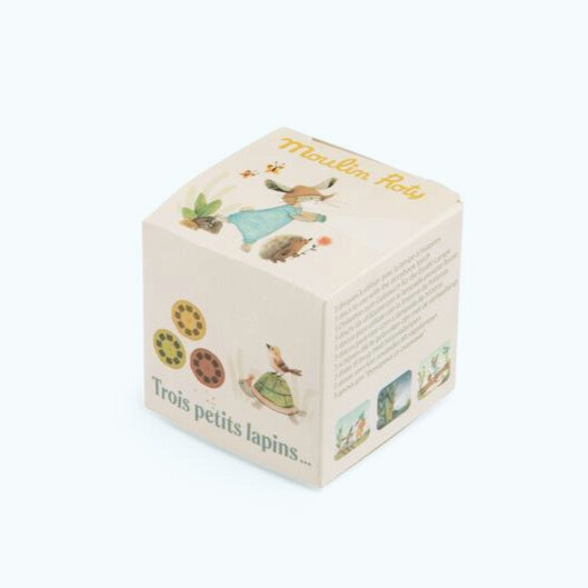 Rezerve pentru lanternă cu poveşti Conține 3 discuri cu ”diapozitive”, fiecare conținând 8 imagini cu povești din colecția Trois petits lapins. Distrează-te inventând o lume de basme împreună cu copilul tău. Compatibile cu orice model de lanternă Moulin Roty. Dimensiuni: 4.5 x 4.5 x 4.5 cm Vârsta recomandată: + 4 ani. Confecţionate din plastic, conform reglementarilor EN71&ASTM. AVERTISMENT! Contraindicat copiilor sub 3 ani, conţine piese mici, pericol de înghițire. A se folosi sub directa supraveghere a unei persoane adulte. Citiţi cu atenţie eticheta înainte de a înmâna jucăria copilului. Producător: Moulin Roty, Franța.