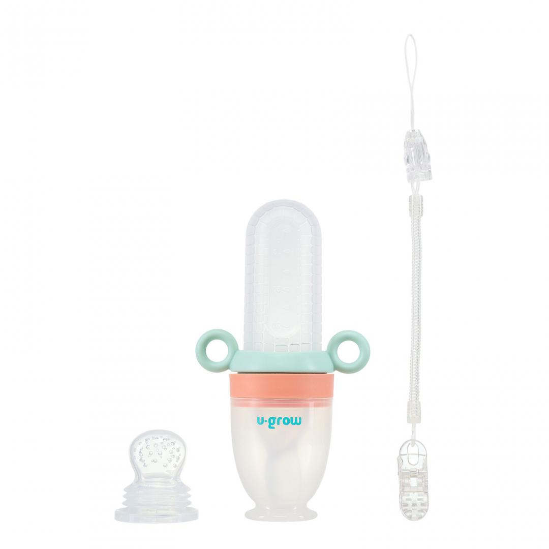 Dizpozitiv de hranire cu 2 tetine : suzeta fructe + lingurita, U-Grow