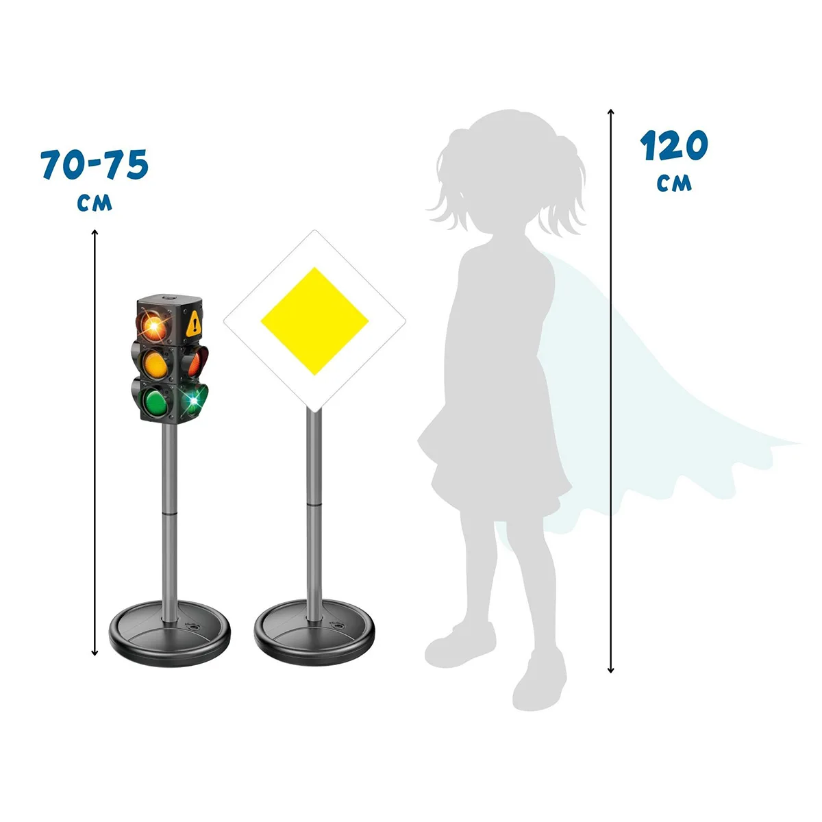 Setul extra-mare impresionează prin designul său realist și oferă tot ce au nevoie tinerii participanți la trafic pentru primii pași în circulația rutieră. Cu multiple semne de circulație și accesorii incluse, copiii pot recrea scenarii din viața reală.