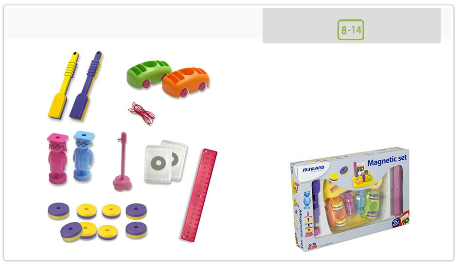 Miniland - Experimente cu magneti Produsul este recomandat copiilor cu varsta intre 8 si 10 ani Fizica este o stiinta complexa iar magnetismul este una dintre ramurile ei! Stii de ce ti se zbarleste parul daca apropi de el o rigla de plastic? Acum ai ocazia sa afli! Kit-ul contine dispozitive pentru investigarea secretelor magnetismului si intelegerea modului de functionare a magnetilor intr-un mod distractiv. Setul include magneti cu diverse forme si accesorii si este foarte potrivit pentru orele de fizica ale elevilor, cu ajutorul lui acestia putand invata notiunile de baza ale magnetismului.