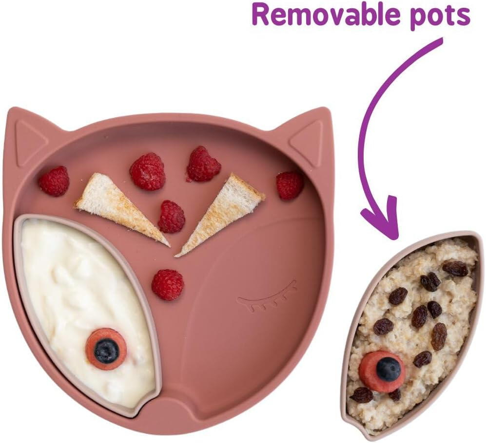 Intarcarea si diversificarea devin mult mai usoare cu aceasta farfurie din silicon in forma de vulpita.