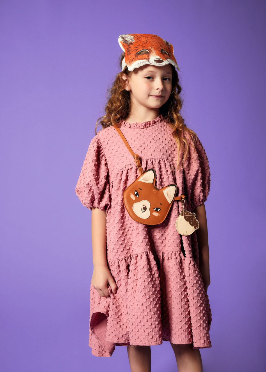 Gentuta de umar cu portmoneu Vulpita Gentuta de umar ilustrata cu fata unei vulpite prietenoase si un mini portofel ghinda din piele artificiala atasat. Maner reglabil. Fermoar usor de manevrat Mini portofel ghinda detasabil, cu fermoar. Dimensiune produs: 13.8 x 16.2 cm. Varsta recomandata: + 4 ani. Confectionata din piele sintetica. Articol decorativ. Nu este jucarie. Produca tor: D jeco, F ranta