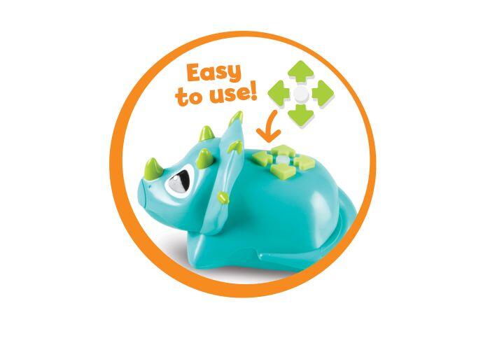 Modul codare: Apasati butoanele care indica directia, aflate pe spatele dinozaurului, pentru a incepe introducerea unei secvente de codare formata din 30 de pasi. Un pas masoara aprox. 10.2 cm.