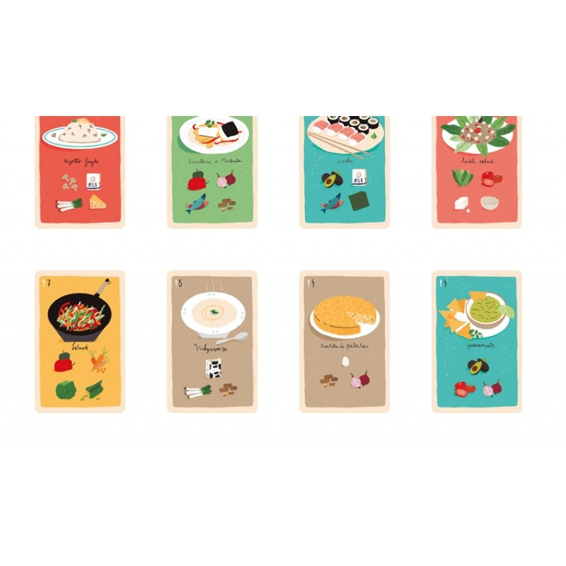 A fost odata .... un bucatar care a incurcat ingredientele necesare pentru a gati retetele din meniu. Ajuta-l sa gaseasca legumele, pestele, pastele, tot ce are nevoie cat mai repede pentru ca sosesc invitatii! Un joc distractiv in care viteza si alegerea celei mai bune optiuni vor fi recompensate! Jucatorul care reuseste sa completeze cele mai multe retete castiga jocul. - Stimuleaza concentrarea si memoria. - Pentru a fi castigator trebuie sa alegeti cea mai buna strategie. Jocul contine 80 de carti cartonate. Pentru 3-6 jucatori. Varsta recomandata: +7 ani. Confectionat din materiale si vopsele non toxice conform reglementarilor EN71&ASTM. AVERTISMENT! Contraindicat copiilor sub 3 ani. A se folosi sub directa supraveghere a unei persoane adulte. Producator: Londji, Spania. Ilustrat de Can Seixanta.