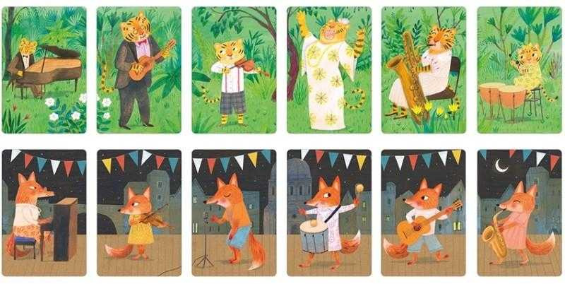 Varsta recomandata: 3-103 ani. 7 familii, fiecare cu cate 6 membrii talentati la muzica, de la bunic la nepotica. Completeaza orchestra pentru fiecare familie de animale. Jocul contine 42 de carti cartonate. Confectionat din materiale si vopsele non toxice conform reglementarilor EN71&ASTM. AVERTISMENT! Contraindicat copiilor sub 3 ani. A se folosi sub directa supraveghere a unei persoane adulte. Producator: Londji, Spania.