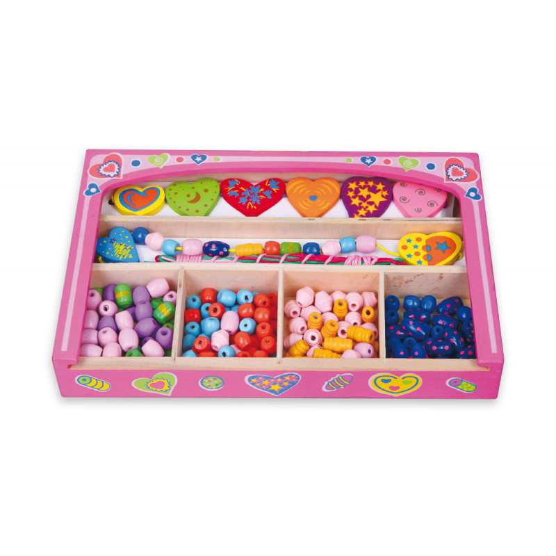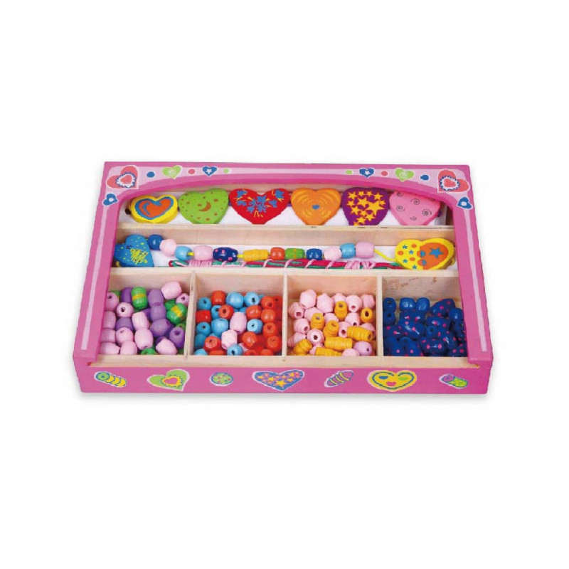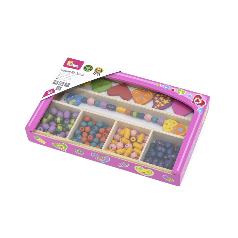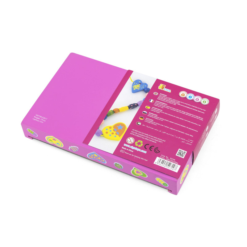 Fiecare cutie adorabila din lemn contine 180 de margele din lemn de diverse forme, incluzand 8 sau 9 forme diferite, impreuna cu 5 sireturi colorate. Copiii pot crea propriul lor colier sau bratara personala. Acest set de margele din lemn ajuta copiii sa-si dezvolte abilitatile motorii fine si cognitive, promovand in acelasi timp coordonarea ochi-mana si creativitatea. Este ambalat intr-o cutie de lemn practica, facilitand depozitarea usoara a margelelor dupa joaca. Acest set de margele din lemn ofera nu doar o modalitate distractiva de exprimare creativa, dar si sustine dezvoltarea abilitatilor esentiale ale copiilor intr-un mod educativ si sigur. Jucarie educativa din lemn, Montessori.   Material: fag de inalta calitate. Dimensiuni: 25 x 15 x 3,5 cm; Ambalare: 1 colet; 400 g Varsta recomandata: 3 ani+ *AVERTISMENT! Contraindicat copiilor mai mici de 3 ani. Jucaria/produsul poate contine piese mici care se pot inghiti sau inhala existand pericolul de sufocare sau nu este potrivita copiilor mai mici de luni. Toate jucariile marca VIGA sunt fabricate din lemn de calitate cu vopsele si cerneluri non-toxice, supuse testelor de siguranta respectand standardele pentru jucarii ale Uniunii Europene EN71 si ASTM. Nu lasati ambalajul produsului la indemana copiilor. Indepartati orice ambalaj al produsului inainte de a da jucaria copilului. Va recomandam sa supravegheati copilul in timp ce se foloseste produsul. Pastrati instructiunile si etichetele pentru referinte viitoare. Feriti produsul de foc, temperaturi ridicate si umiditate.