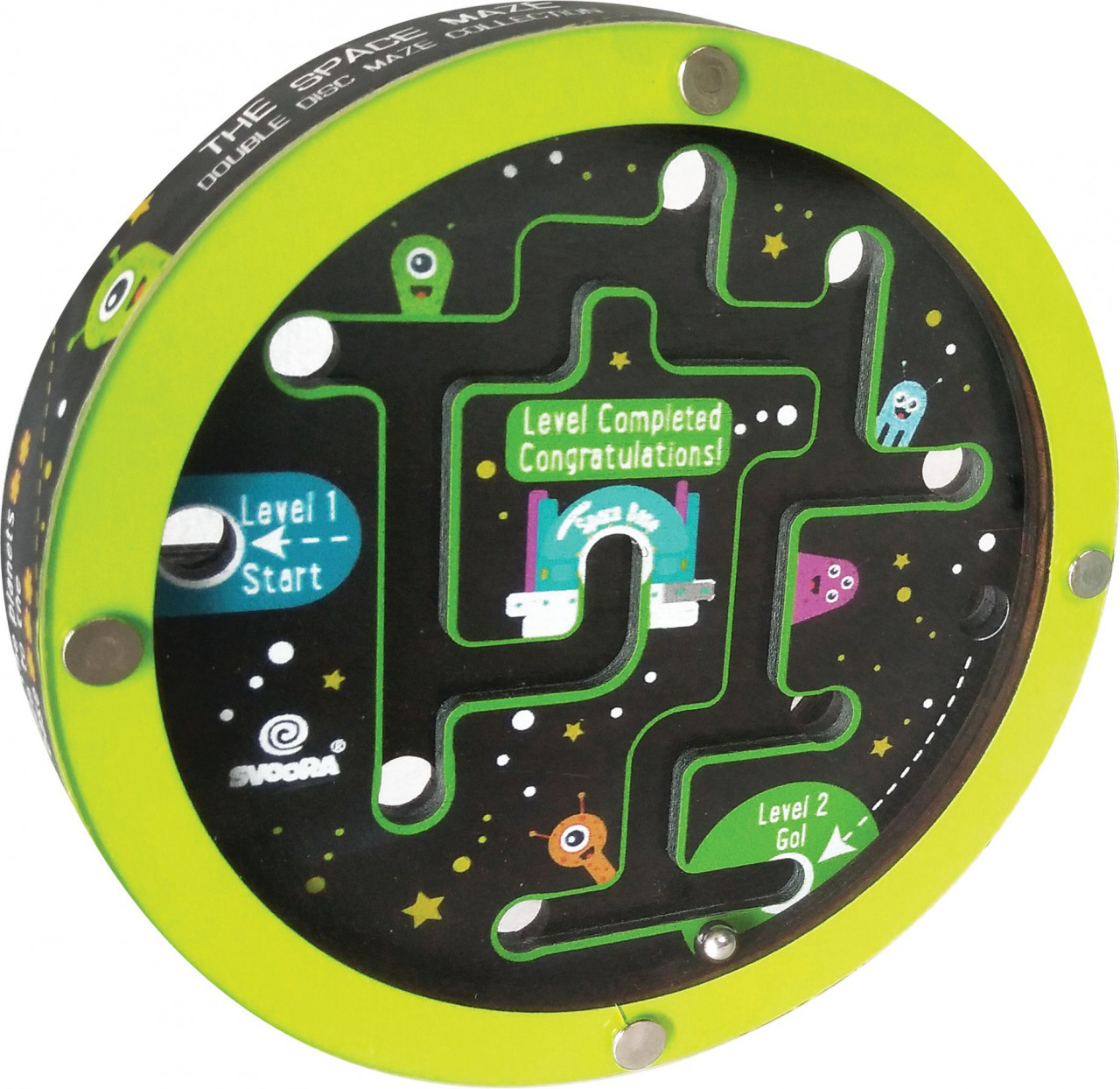 Joc de logica si indemanare Labirint dublu spatiu 2 labirinturi intr-unul singur! Fiecare disc contine doua labirinturi diferite, cate unul pe fiecare parte. Urmati traseul, colectati elementele si treceti dintr-o parte in alta, pentru a finaliza misiunea. Doua labirinturi diferite intr-un singur joc, doua nivele consecutive de completat, pentru o mai mare provocare si o explorare plina de imaginatie si suspans! Dimensiune 11 × 11 × 2,2 cm Varsta recomandata: + 6 ani. Fabricat din lemn. Conform standardelor EN71, ASTM. AVERTISMENT! Contraindicat copiilor sub 3 ani. A se folosi sub directa supraveghere a unei persoane adulte. Producator: Svoora, Grecia