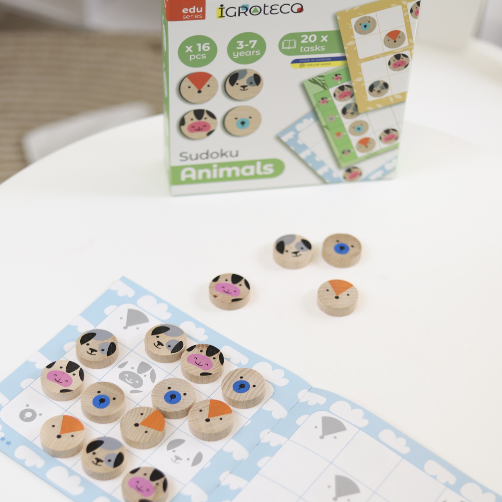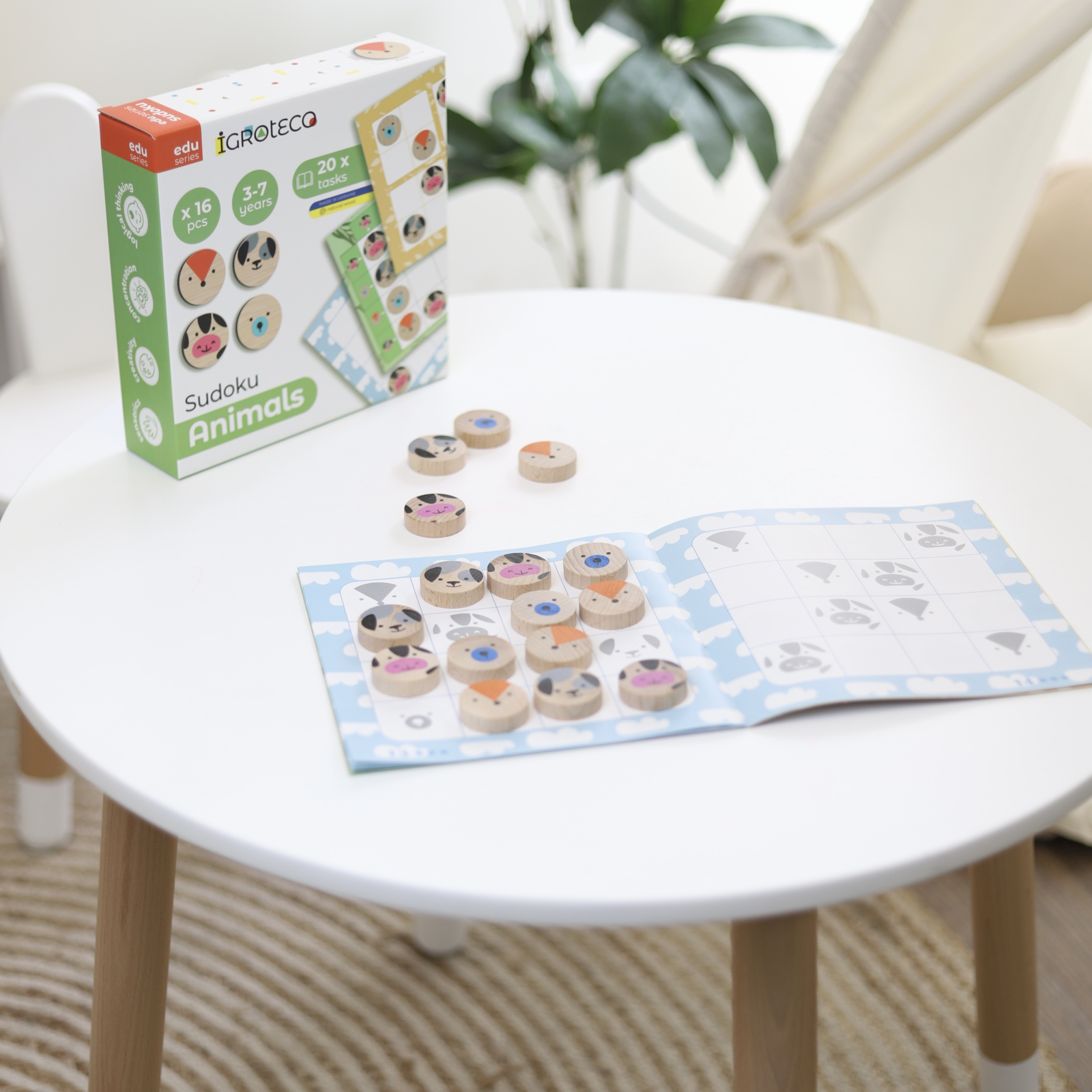 📢 Adaugă acum în coș Joc de logica din lemn „Sudoku Animale” 16 piese și oferă copilului tău o experiență educativă interactivă și captivantă!