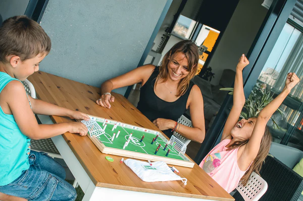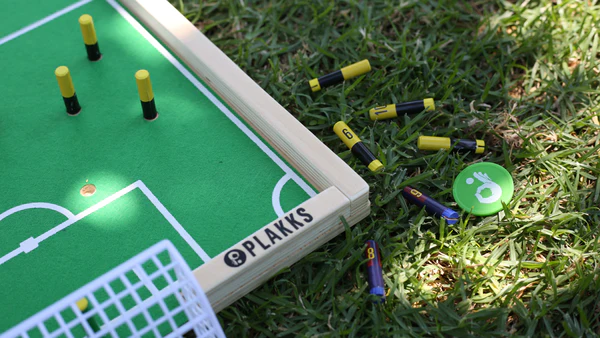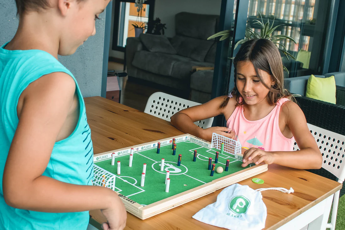 Descoperă PLAKKS, jocul captivant și interactiv care aduce întreaga familie împreună! Acest joc de fotbal pe tablă, fabricat din lemn, combină distracția, îndemânarea și strategia într-o formă ideală pentru orice masă sau chiar podea. Bucură-te de ore întregi de amuzament, fie că ești copil sau adult!