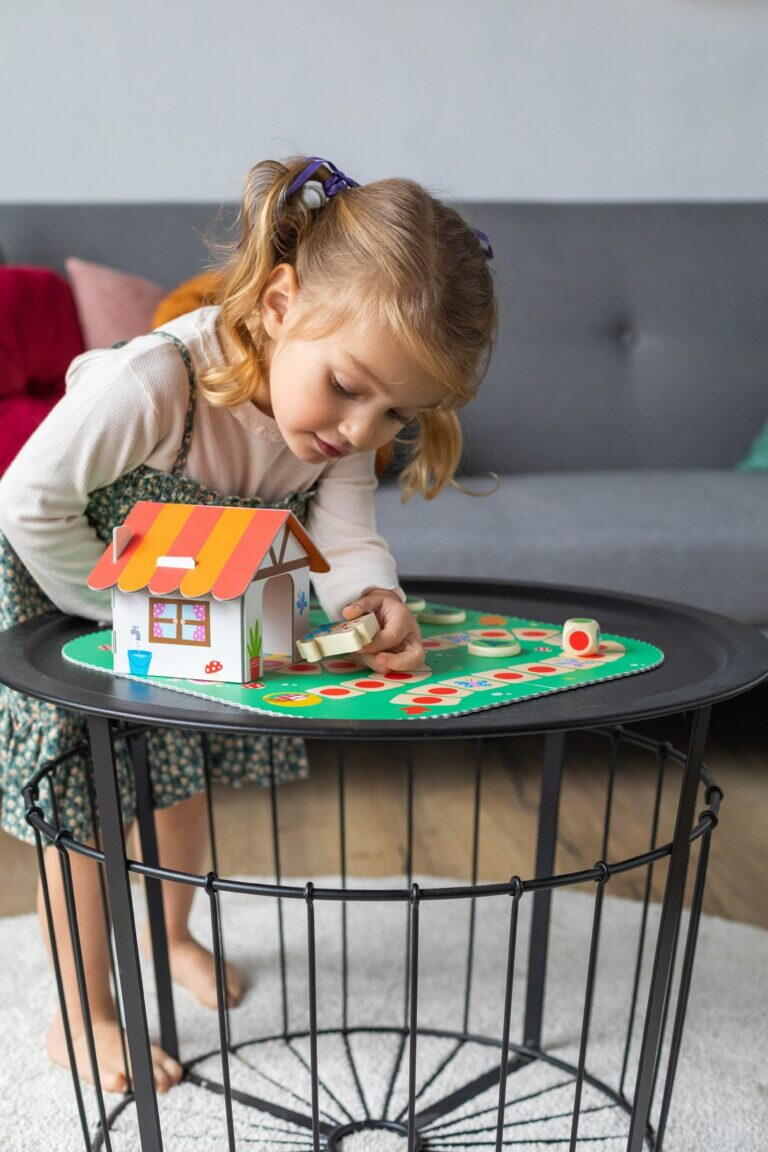 Jocul a fost captivant, F. a fost interesat de modalitatea de așezare a pinguinilor cu ousoarele colorate, joc pe care l-a și câștigat de prima data. I-a plăcut ideea de a arunca cu zarul și astfel am repetat și culorile...