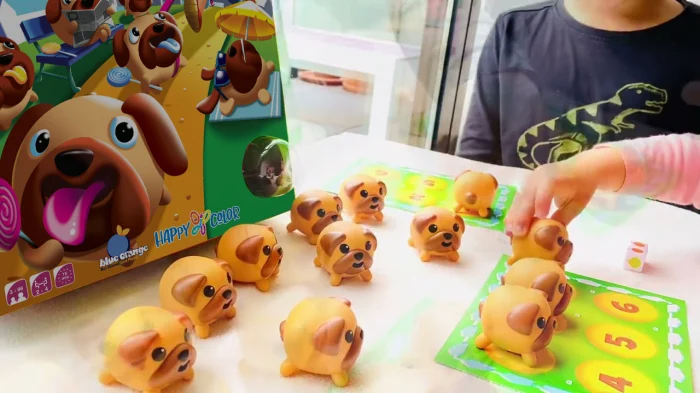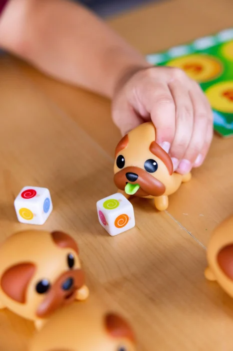Provocarea voastră este să aflați ce acadea a mâncat fiecare. Din fericire, limbile lor sunt vopsite acum în culoarea acadelei pe care au mâncat-o! Strângeți ușor cățelușii pentru a vedea culoarea limbii fiecăruia și potriviți-i apoi la locul corespunzător de pe plăcuța voastră în funcție de culoarea acadelelor de pe zarurile pe care le-ați aruncat când sunteți la rând!