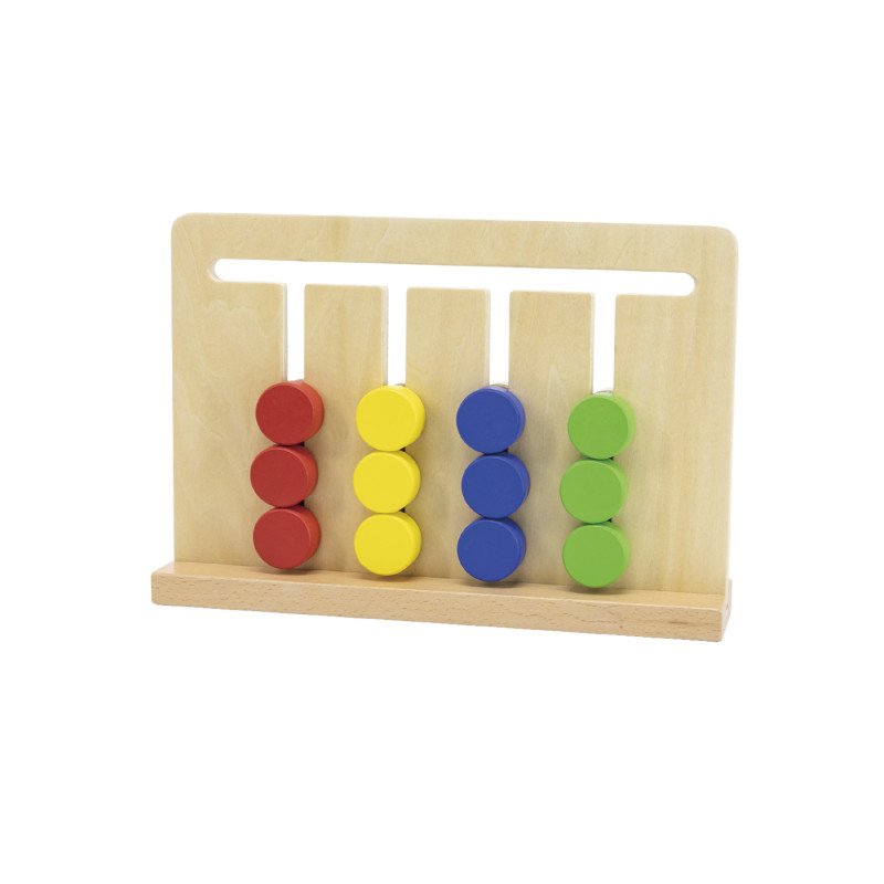 Aceasta tabla de puzzle glisant, cu doua fete, este un instrument de invatare convenabil pentru a-i ajuta pe cei mici sa recunoasca culorile si formele.Alege la intamplare o carte din cele 16 carti de joc cu doua fete si muta piesele astfel incat sa se potriveasca cu modelul de pe cartea aleasa.Un joc super distractiv care imbunatateste coordonarea mana-ochi si dezvolta abilitatile de observatie si logica. Jucarie educativa din lemn, Montessori. Material: lemn  Dimensiuni: saculet: vaca: 27 x 6 x 8,8 x  cm; Varsta recomandata: 3 ani+  Ambalare: 1 colet, 0,4 kg AVERTISMENT! Contraindicat copiilor mai mici de 3 ani. Jucaria/produsul poate contine piese mici care se pot inghiti sau inhala existand pericolul de sufocare sau nu este potrivita copiilor mai mici de luni. Toate jucariile marca VIGA sunt fabricate din lemn de calitate cu vopsele si cerneluri non-toxice, supuse testelor de siguranta respectand standardele pentru jucarii ale Uniunii Europene EN71 si ASTM. Nu lasati ambalajul produsului la indemana copiilor. Indepartati orice ambalaj al produsului inainte de a da jucaria copilului. Va recomandam sa supravegheati copilul in timp ce se foloseste produsul. Pastrati instructiunile si etichetele pentru referinte viitoare. Feriti produsul de foc, temperaturi ridicate si umiditate.