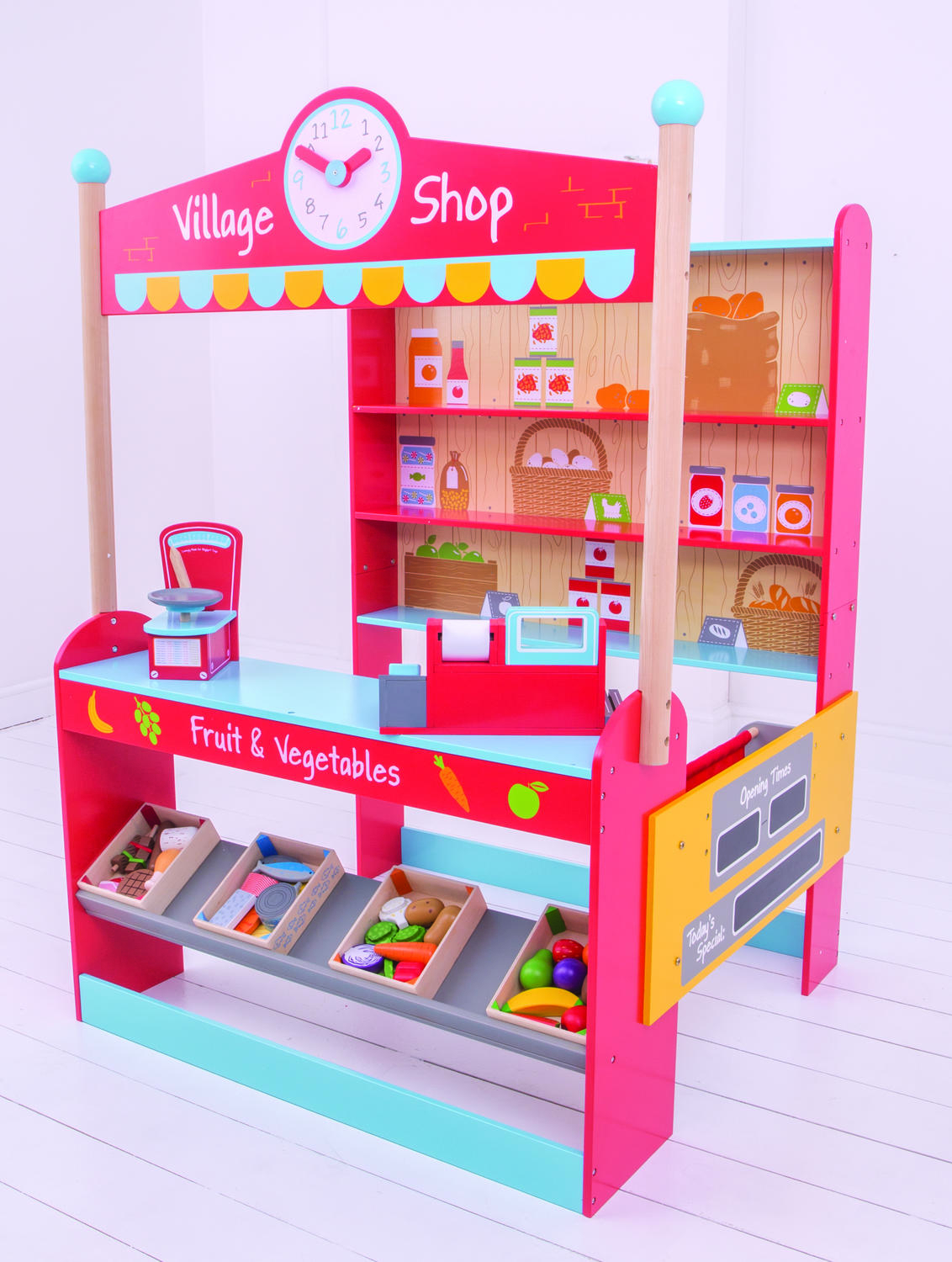 Esti pregatit pentru o zi plina de distractie? Scrie pe tablita programul de lucru si ofertele speciale, apoi arunca o privire la ceas pentru a vedea cat mai este pana vor veni primii clienti. Oare ce bunatati vor cumpara azi vizitatorii tai?