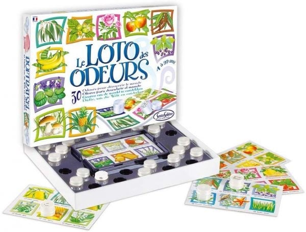 Devenit un mare clasic al jocurilor educative și senzoriale, Loto-ul Mirosurilor trezește simțul olfactiv al celor mici și mari datorită celor 30 de recipiente care emană mirosuri. De la fructe exotice sau din pădurile noastre, până la florile din grădini și parfumurile elementelor din viața de zi cu zi, redescoperiți lumea prin toate nuanțele sale olfactive cu ajutorul celor 30 de recipiente ale Loto-ului Mirosurilor. Acest joc bogat în descoperiri favorizează un schimb valoros între părinți și copii. Regulile jocului sunt la fel de simple pe cât sunt de captivante: trebuie doar să recunoști un miros și să-l asociezi cu imaginea corespunzătoare. Primul jucător care își completează corect tabla ilustrată câștigă partida! Mirosuri conținute Mirosuri 100% naturale: Lămâie, Eucalipt, Mentă, Portocală, Pin, Fenicul, Lavandă, Vanilie. Mirosuri create din produse naturale și/sau molecule: Floare de portocal, Lemn ars, Mare, Coacăze negre, Ananas, Căpșuni, Iarbă, Banane, Miere, Lăcrămioare, Caprifoi, Trandafir, Grapefruit, Caise, Săpun, Ciuperci, Alune, Pepene galben, Cocos, Violete, Biscuit, Măr. Secretele fabricației Mirosurile au fost create de Véronique Debroise, parfumier, cu o mare exigență în privința calității, pentru a educa noile generații în dezvoltarea unei culturi olfactive, folosind cele mai rafinate materii prime din parfumerie. Ulterior, mirosurile sunt produse în fabrica noastră din Yvelines, Franța. Un set creat și fabricat 100% în Franța. Sfaturi de utilizare Capsulele noastre cu mirosuri sunt garantate pentru cel puțin 2 ani de utilizare olfactivă și pot rezista mult mai mult timp dacă sunt închise corespunzător după fiecare joc. Păstrați jocul departe de surse de căldură. Nu reușiți să recunoașteți un miros? Nicio problemă, simțul olfactiv se educă! Cineva care nu este obișnuit să recunoască mirosuri fără un indiciu scris poate considera exercițiul dificil, dar vă garantăm că, odată cu puțin antrenament, va deveni o joacă de copil. Primul nostru sfat: învățați să categorizați mirosul perceput: este dulce? fructat? lemnos? floral? etc. Al doilea sfat: gândiți-vă la ce vă amintește mirosul. Simțul olfactiv este cel mai legat de memorie! Un miros poate evoca un anotimp (căpșunile verii), o persoană (mirosul de lavandă din dulapul bunicii), un fel de mâncare, un șampon, un loc etc. Aceste asocieri vă pot ajuta să puneți un nume percepției olfactive. În cele din urmă, mirosurile sunt asemenea culorilor – pline de nuanțe. Așa cum există verde crud, mentă, smarald, tot așa există multiple nuanțe ale mirosului de măr: măr verde, Golden, Granny Smith, suc de mere, compot de mere... Mirosurile din jocurile noastre sunt doar una dintre aceste nuanțe, aleasă pentru a fi cât mai realistă și calitativă. A avea dificultăți în a numi un miros nu înseamnă că nu ai simțul mirosului, ci doar că legătura dintre senzația percepută (hipotalamusul) și centrul limbajului nu este încă formată. Această conexiune se dobândește în timp – exact cum o fac parfumierii sau somelierii. Conține: 30 recipiente cu mirosuri 5 planșe de joc illustrate Vârstă Recomandată : 8 ani + Dimensiuni cutie : ‎34 x 4 x 28 cm Brand : SENTOSPHERE Produs fabricat in Franta. Cutie din carton reciclat in proportie de peste 89% Avertisment Atenție! Conține substanțe parfumate care pot provoca alergii. Atenție! Conține piese mici. Pericol de sufocare. Componentele mirosurilor pot include: Uleiuri și extracte naturale: Citrus Limon Peel Oil/Extract, Citrus Sinensis Peel Oil, Eucalyptus Globulus Oil, Eugenia Caryophyllus Bud Oil, Jasmine, Jasminum grandiflorum ext., Lavandula Hybrida Oil, Lavandula Officinalis Oil, Oakmoss extracts, Peru Balsam ext., Pogostemon Cablin Oil, Rosa Damascena Flower Oil/Extract, Treemoss extract, Ylang-ylang Oil/Extract. Molecule parfumate: amyl cinnamal, amylcinnamyl alcohol, amyl salicylate, anethole, anisyl alcohol, benzyl alcohol, benzaldehyde, benzyl benzoate, benzyl cinnamate, benzyl salicylate, camphor, carvone, β-caryophyllene, cinnamal, cinnamyl alcohol, citral, citronellol, coumarin, α-damascone, β-damascone, β-damascenone, dimethyl benzyl carbinyl acetate, eugenol, eugenyl acetate, farnesol, geraniol, geranyl acetate, hexamethylindano-pyran, hexyl cinnamaldehyde, hydroxycitronellal, hydroxyisohexyl-3-cyclohexene carboxaldehyde, α-isomethyl ionone, isoeugenol, linalool, linalyl acetate, limonene, menthol, methyl salicylate, α-pinene, β-pinene, terpinene, terpineol, terpinolene, vanillin. Descarcă instrucțiunile în limba română