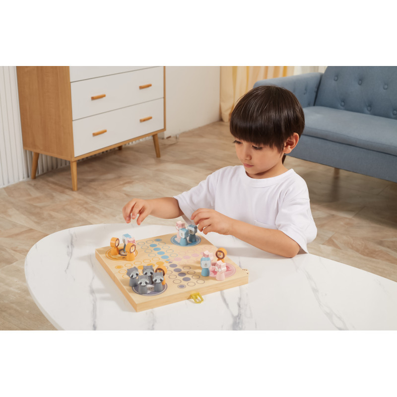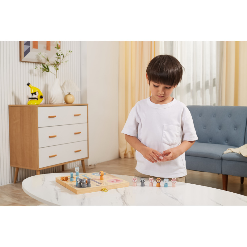 Un joc clasic Ludo (Nu te supara, frate!) pentru 2 pana la 4 jucatori.  Deschideti cutia de lemn si intoarceti-o pentru a avea la dispozitie o tabla frumoasa de joc. Vine cu 16 figurine din lemn (4 bucati din fiecare din cele 4 animale) si 4 zaruri.  Ideal pentru joaca cu prietenii sau familia.  Joc educativ din lemn, Montessori.  Dimensiune: 26 x 26 x 5,5 cm  Varsta recomandata: 3 ani+  *AVERTISMENT! Jucaria/produsul poate contine piese mici care se pot inghiti sau inhala existand pericolul de sufocare sau nu este potrivita copiilor mai mici de luni. Toate jucariile marca VIGA sunt fabricate din lemn de calitate cu vopsele si cerneluri non-toxice, supuse testelor de siguranta respectand standardele pentru jucarii ale Uniunii Europene EN71 si ASTM. Nu lasati ambalajul produsului la indemana copiilor. Indepartati orice ambalaj al produsului inainte de a da jucaria copilului. Va recomandam sa supravegheati copilul in timp ce se foloseste produsul. Pastrati instructiunile si etichetele pentru referinte viitoare. Feriti produsul de foc, temperaturi ridicate si umiditate.