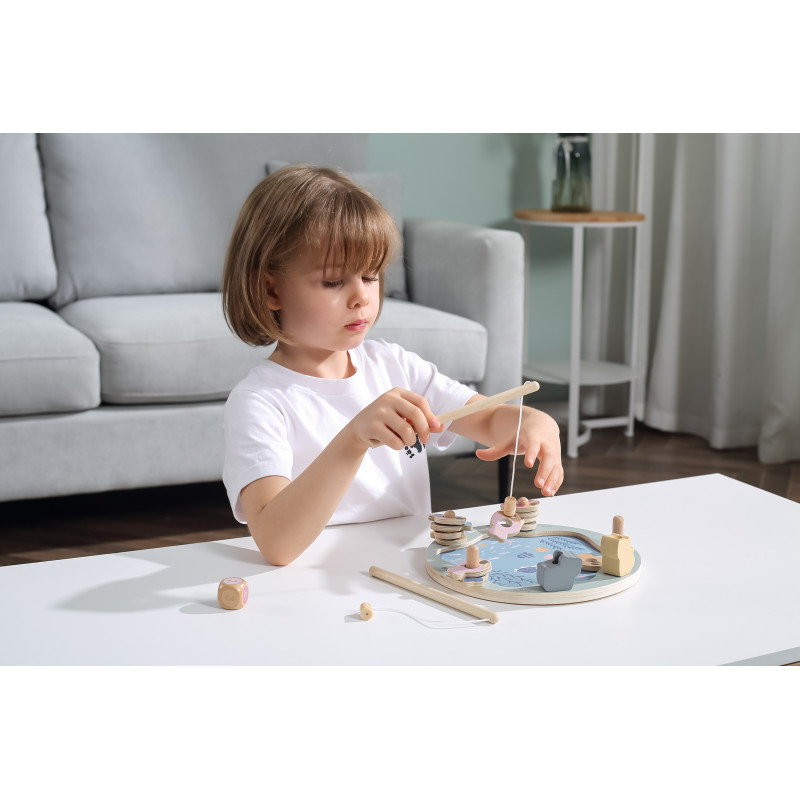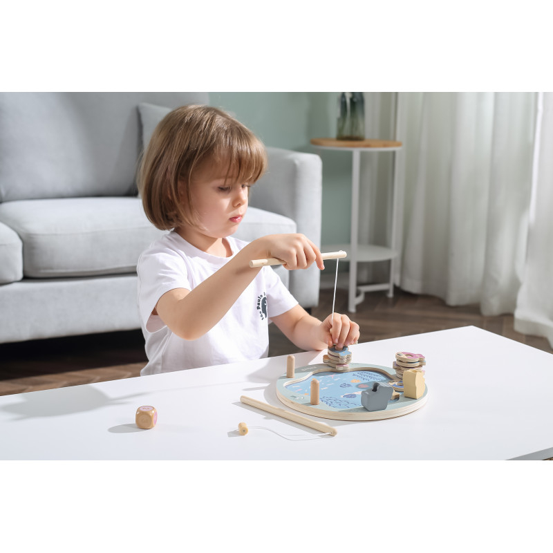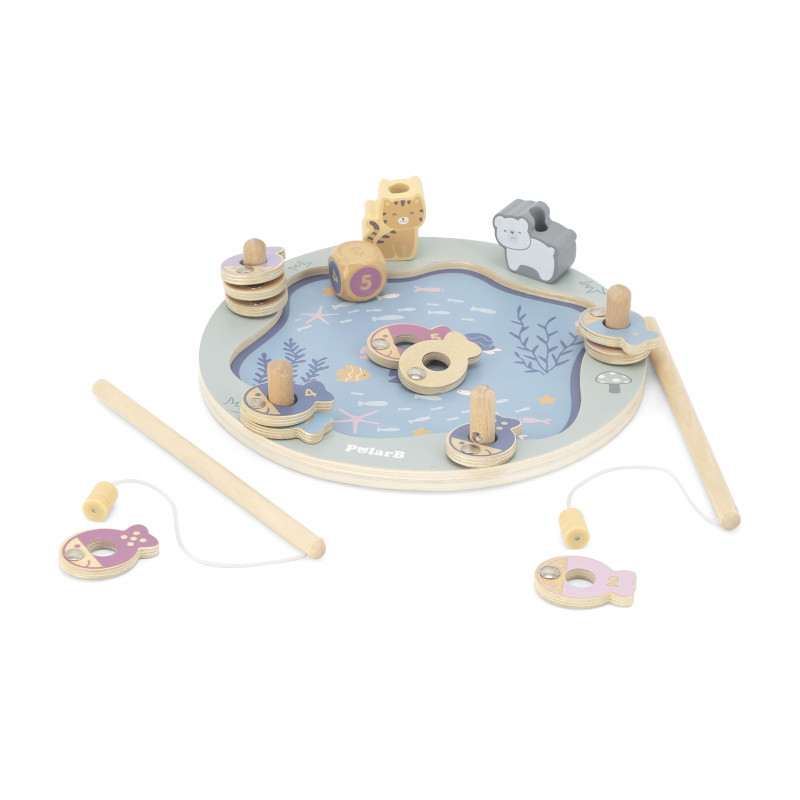 Acest joc de pescuit magnetic consta dintr-un iaz de pescuit, 12 pesti, un zar si doua undite.  Folositi tijele magnetice pentru a prinde pestii si asezati-i pe piesa de lemn.  Pestii pot fi distinsi fie prin culoare, fie prin numarul de pe spate, ceea ce face din acesta un instrument excelent pentru a introduce conceptele de culoare si numar.  Ajuta la dezvoltarea coordonarii mana-ochi, cultiva rabdarea si ii ajuta pe micii pescari sa isi creasca increderea in fortele proprii. Jucarie educativa din lemn, Montessori.  Dimensiuni totale: D22,5 x 21,5 cm Varsta recomandata: 18 luni+  *AVERTISMENT! Contraindicat copiilor mai mici de 18 luni. Jucaria/produsul poate contine piese mici care se pot inghiti sau inhala existand pericolul de sufocare sau nu este potrivita copiilor mai mici de luni. Toate jucariile marca VIGA sunt fabricate din lemn de calitate cu vopsele si cerneluri non-toxice, supuse testelor de siguranta respectand standardele pentru jucarii ale Uniunii Europene EN71 si ASTM. Nu lasati ambalajul produsului la indemana copiilor. Indepartati orice ambalaj al produsului inainte de a da jucaria copilului. Va recomandam sa supravegheati copilul in timp ce se foloseste produsul. Pastrati instructiunile si etichetele pentru referinte viitoare. Feriti produsul de foc, temperaturi ridicate si umiditate.