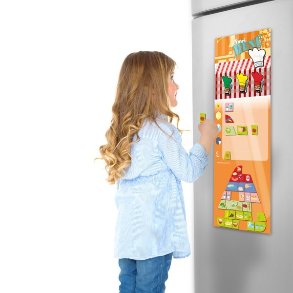 Joc Piramida alimentelorUn joc magnetic care ajuta la invatarea despre piramida alimentelor sii importanta fiecarui aliment in dieta noastra zilnica.Se va verifica daca un copil a mancat intr-un mod sanatos in fiecare zi.   Setul educational ajuta la invatarea alimentelor precum si  la deprinderea obiceiurilor corecte in alimentatie si  dezvoltarea limbajului.   Dimensiuni: 56 x 22cm