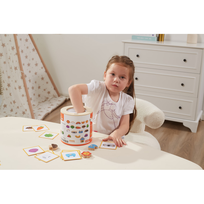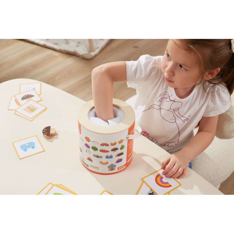 Acest joc senzorial Atinge si gaseste include 20 de blocuri din lemn, 20 de carti de joc si o cutie si poate fi jucat de unul sau mai multi jucatori. Mai jos sunt cateva instructiuni pentru diferite moduri de a juca:1. Cautati-l: alegeti o carte de joc si incercati sa scoateti din cutie blocul din lemn corespunzator, fara sa va uitati. 2. Ghici: alegeti la intamplare un bloc din lemn din cutie si ghiciti ce este, fara sa va uitati.3. Joc de potrivire: Potriviti blocurile din lemn cu cartile de joc.4. Joc de sortare: Sortati blocurile din lemn pe categorii.5. Joc de memorie: Scoateti 3 carti de joc, memorati modelele si apoi gasiti blocurile din lemn corespunzatoare din cutie.Un joc Excelent pentru imbunatatirea abilitatilor motorii fine si pentru a incuraja observarea si dezvoltarea atentiei si concentrarii. Material: lemn, carton. Joc educativ, Montessori.    Dimensiuni: D15,5 x 15 cm    Varsta recomandata: 3 ani+   *AVERTISMENT! Contraindicat copiilor mai mici de 3 ani. Jucaria/produsul poate contine piese mici care se pot inghiti sau inhala existand pericolul de sufocare sau nu este potrivita copiilor mai mici de luni. Toate jucariile marca VIGA sunt fabricate din lemn de calitate cu vopsele si cerneluri non-toxice, supuse testelor de siguranta respectand standardele pentru jucarii ale Uniunii Europene EN71 si ASTM. Nu lasati ambalajul produsului la indemana copiilor. Indepartati orice ambalaj al produsului inainte de a da jucaria copilului. Va recomandam sa supravegheati copilul in timp ce se foloseste produsul. Pastrati instructiunile si etichetele pentru referinte viitoare. Feriti produsul de foc, temperaturi ridicate si umiditate.
