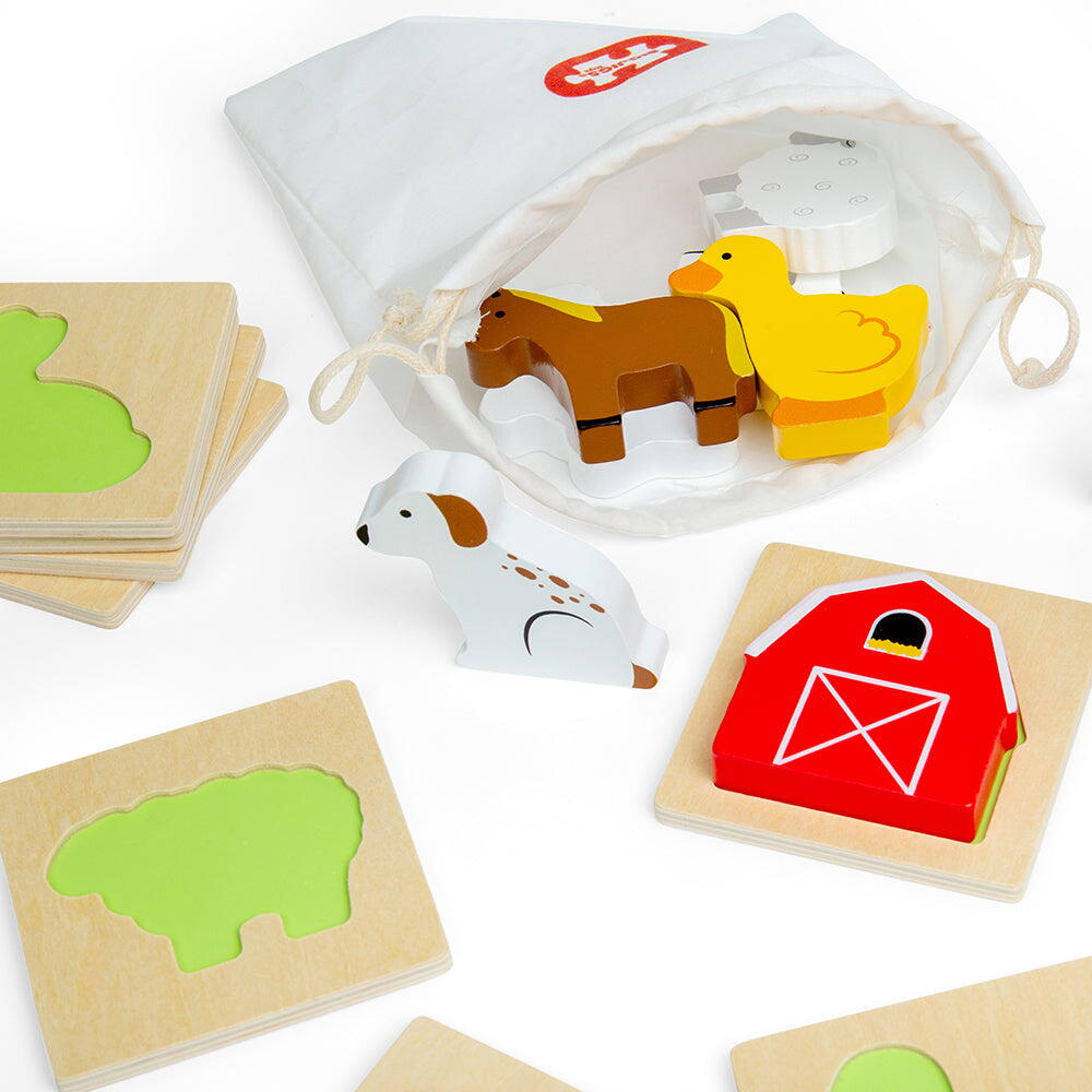 Copiii isi pot testa abilitatile de recunoastere prin atingere cu acest puzzle senzorial captivant. Micutii trebuie sa bage mana in saculetul din material textil si sa gaseasca piesa potrivita pentru fiecare placuta, ghicind forma obiectului doar prin atingere.